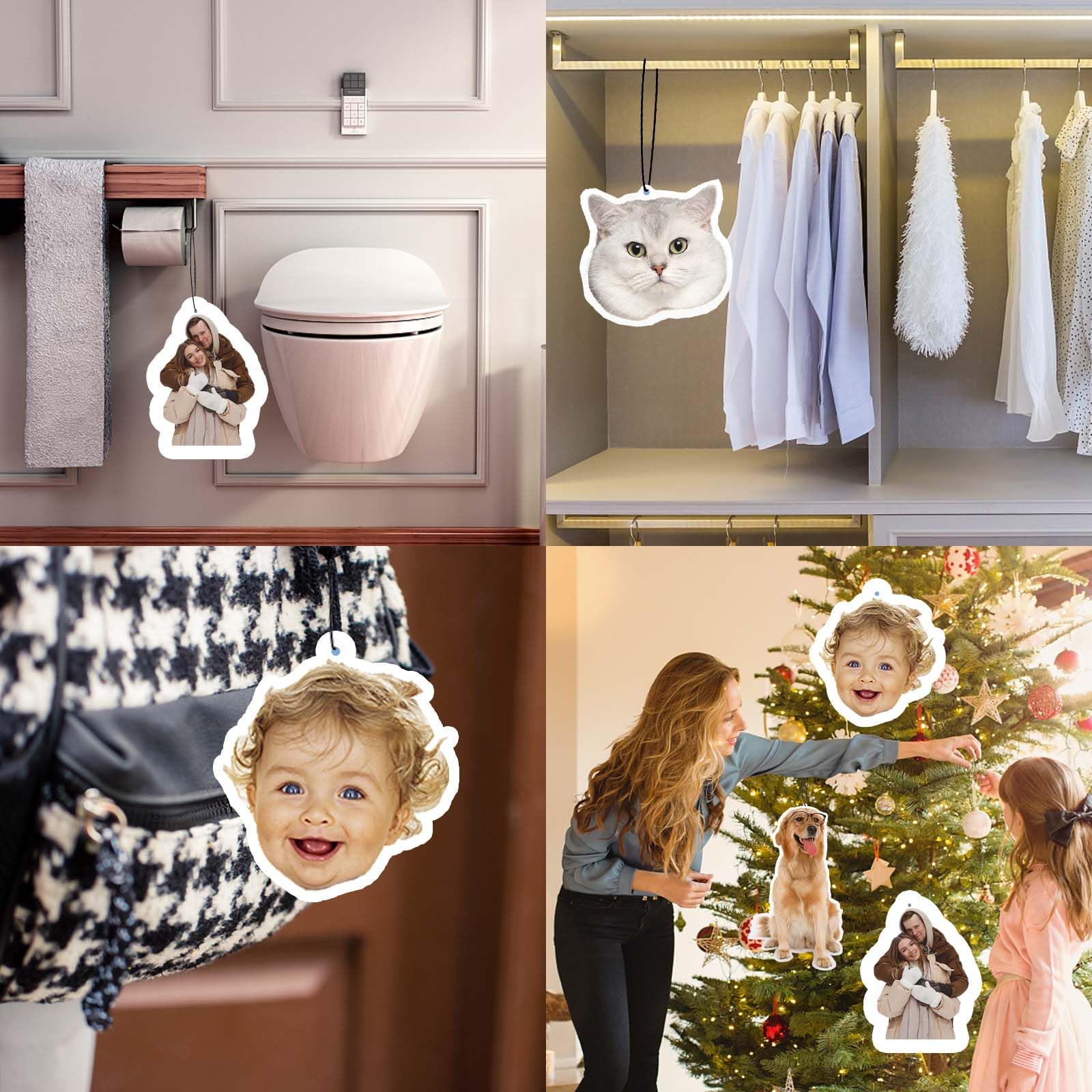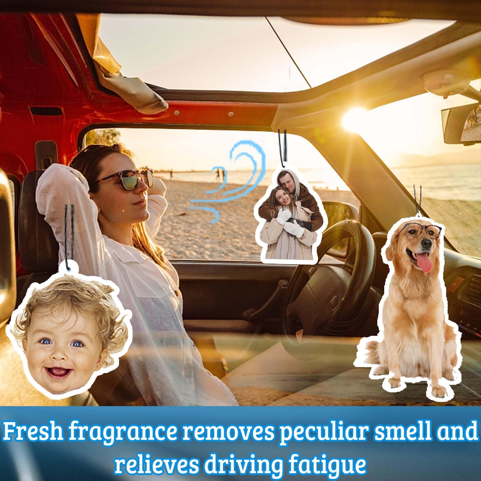 - 🎁【 Unique Gift 】: Personalized photo car air freshener is a unique and innovative fragrance gift for holidays, anniversaries, birthdays, graduation, weddings, Valentine's Day, and Merry Christmas. Your photo text can be used to create exclusive car photo air freshener gifts. You can also customize commercial logos to create unique promotional logos for your company team
