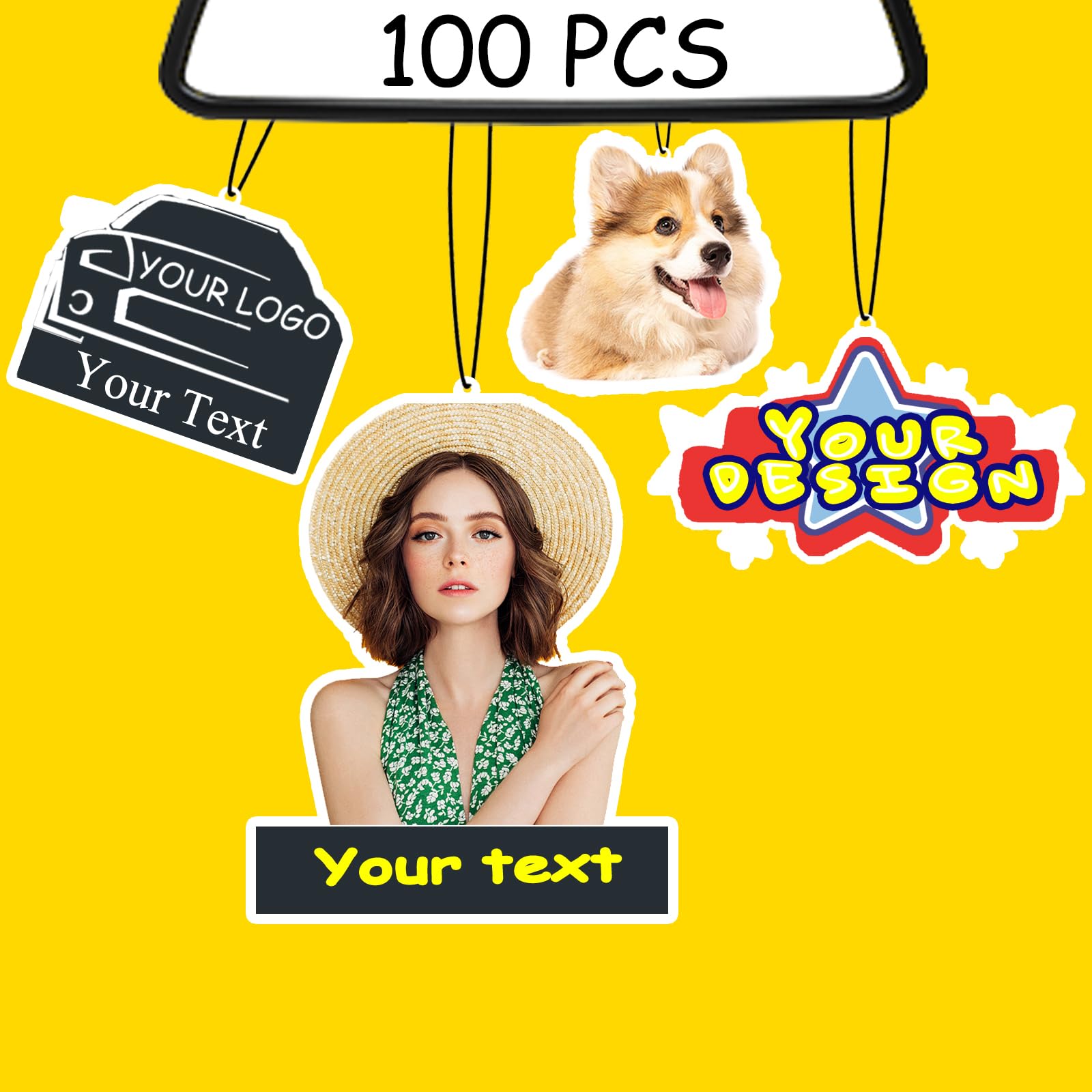 100PCS Bulk Custom Logo Air Freshener for Car cut out.Personalized Double Sided Photo Car Air Fresheners.Personalizado Logo Car Air Freshener With Picture Text (100PCS)