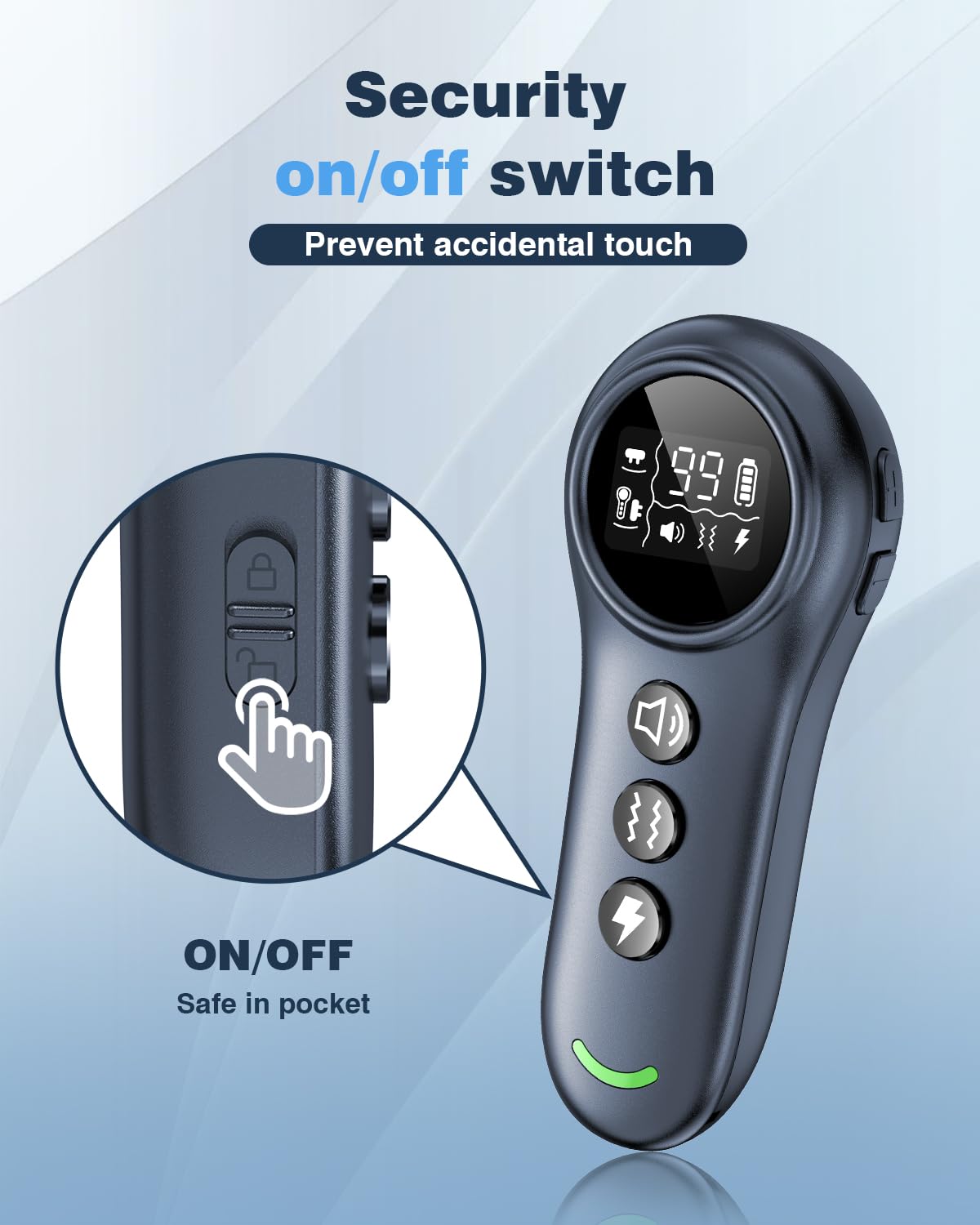- 【IP67 Waterproof Collar & Security Lock】The IP67 waterproof electric dog collar can be used in any weather and any condition (you must keep the remote away from water). Instant response security on/off switch lets you carry it without worrying about accidental touches.