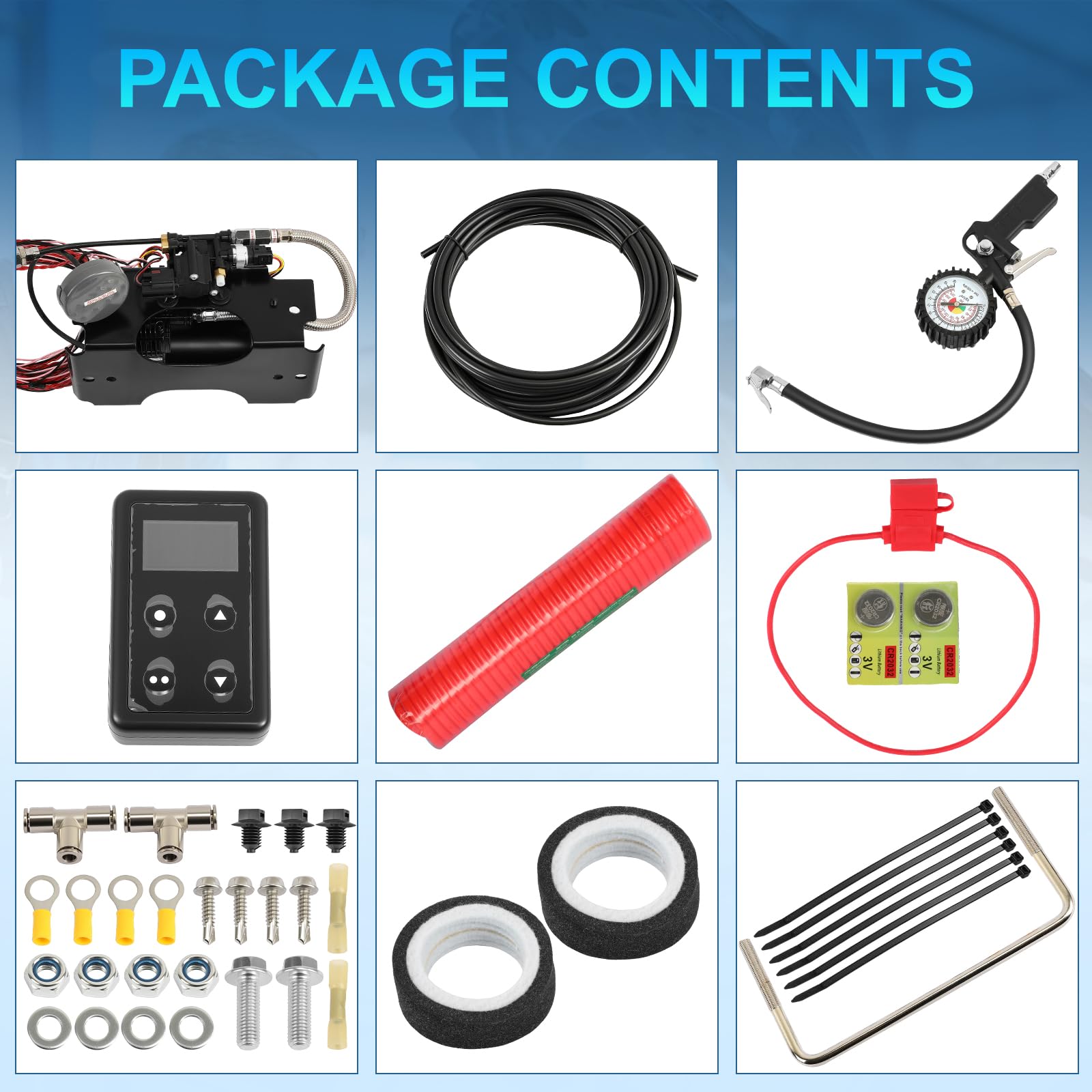 25980EZ Wireless On Board Air Compressor System, Air Spring Compressor Kit, with a portable tire inflation kit