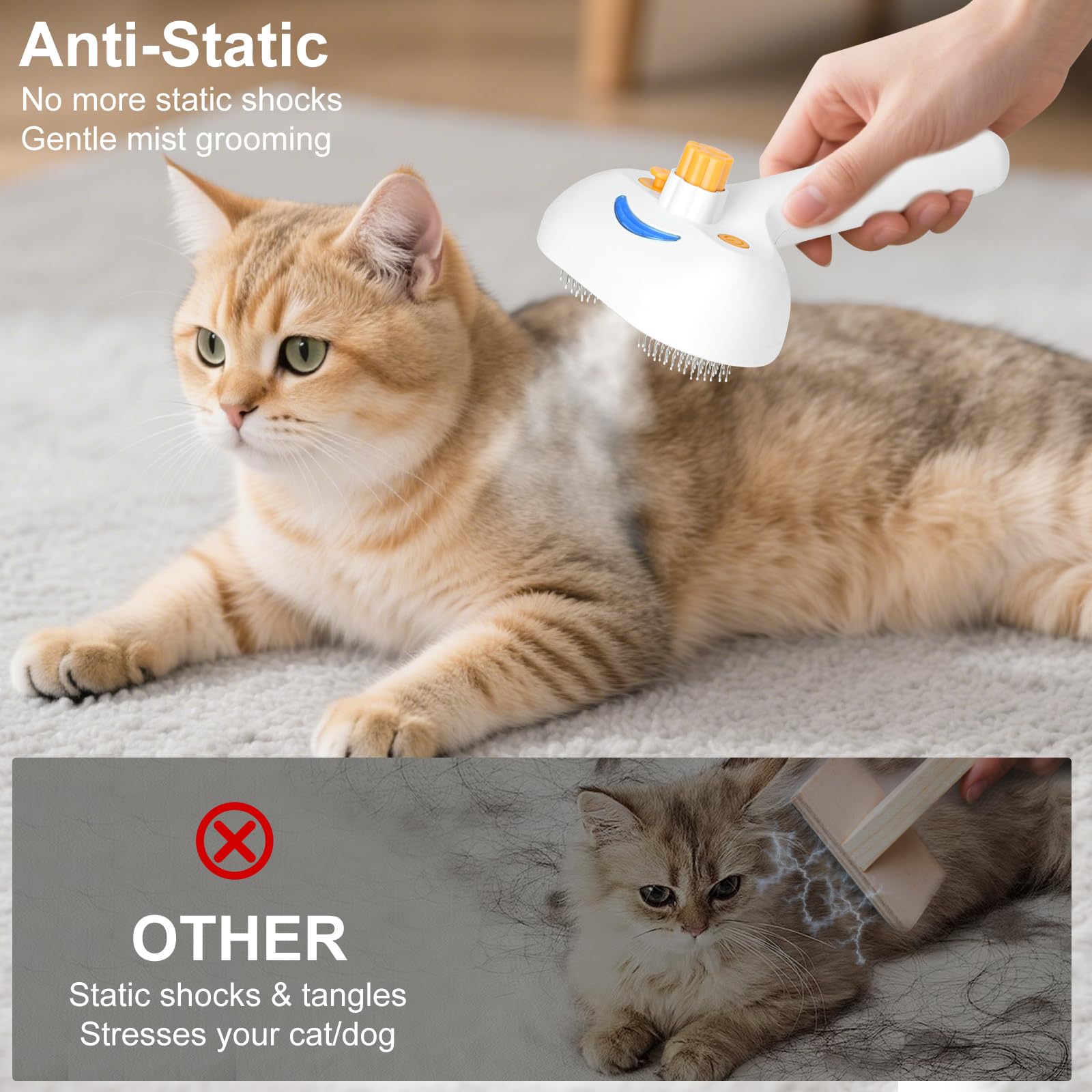 - 【3 in 1 Cat Steam Brush】: Multi-functional pet grooming tool that combines the functions of hair removal, cleaning and massage. While removing hair, clean dirt from hair and skin. Let you don't need to worry about cleaning your beloved pet every day. Note: Our cat brush only converts water into spray and does not heat it