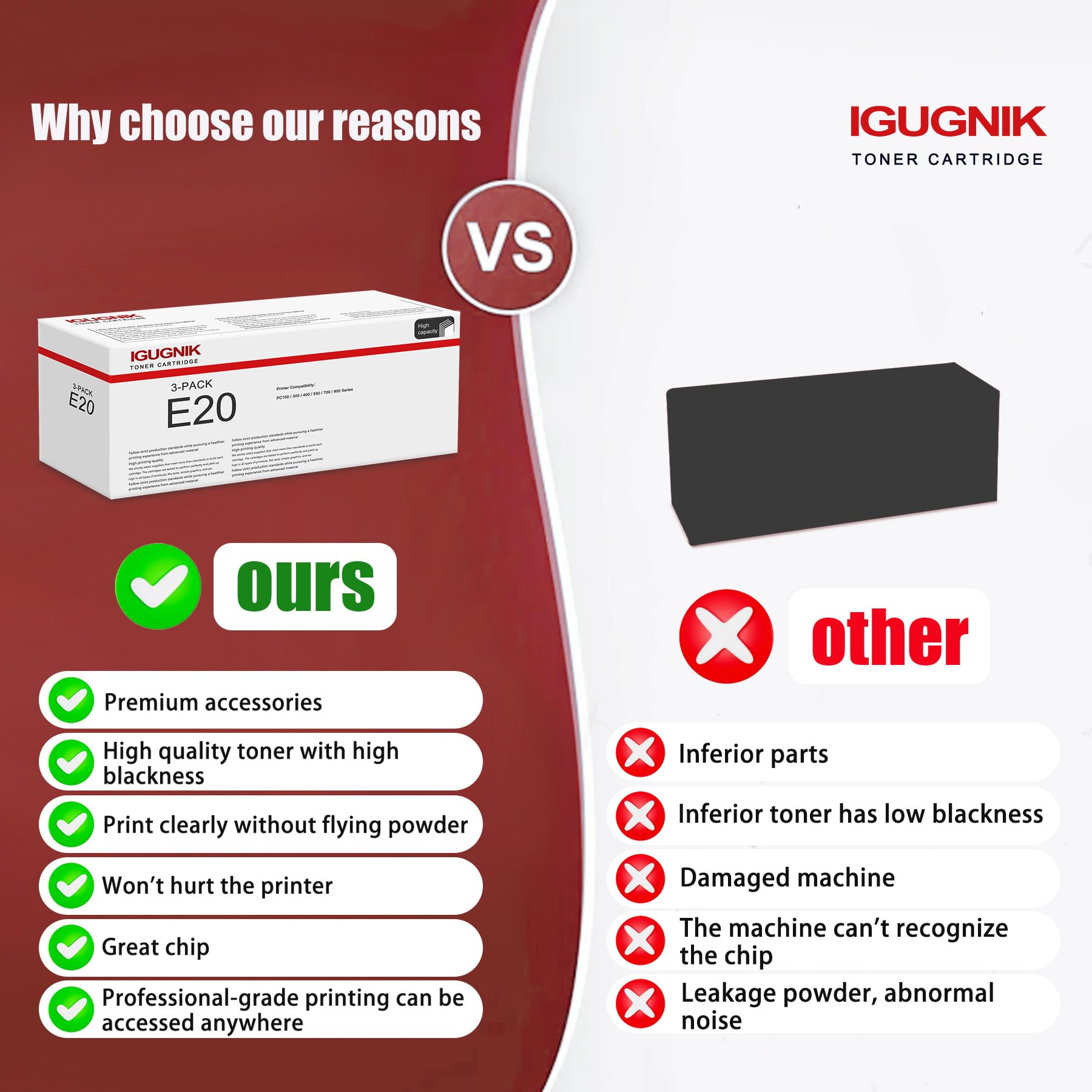 - Include: 3 Pack E20 Toner Cartridges Compatible for 3 Black (E20).