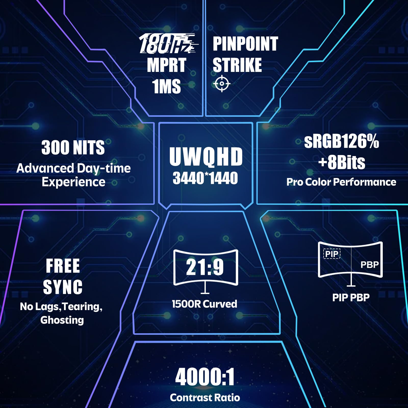 - Pro-Level Gaming Performance, Up to 180Hz refresh rate allow gamers to enjoy smooth video and seamless, on-the-spot movement through fast-paced games. The 34 inch ultrawide monitor supports adaptive sync compatible with FreeSync Premium and G-SYNC, which effectively prevents tearing (image shift) and freezing (screen capture), providing incredible image quality for clear video playback