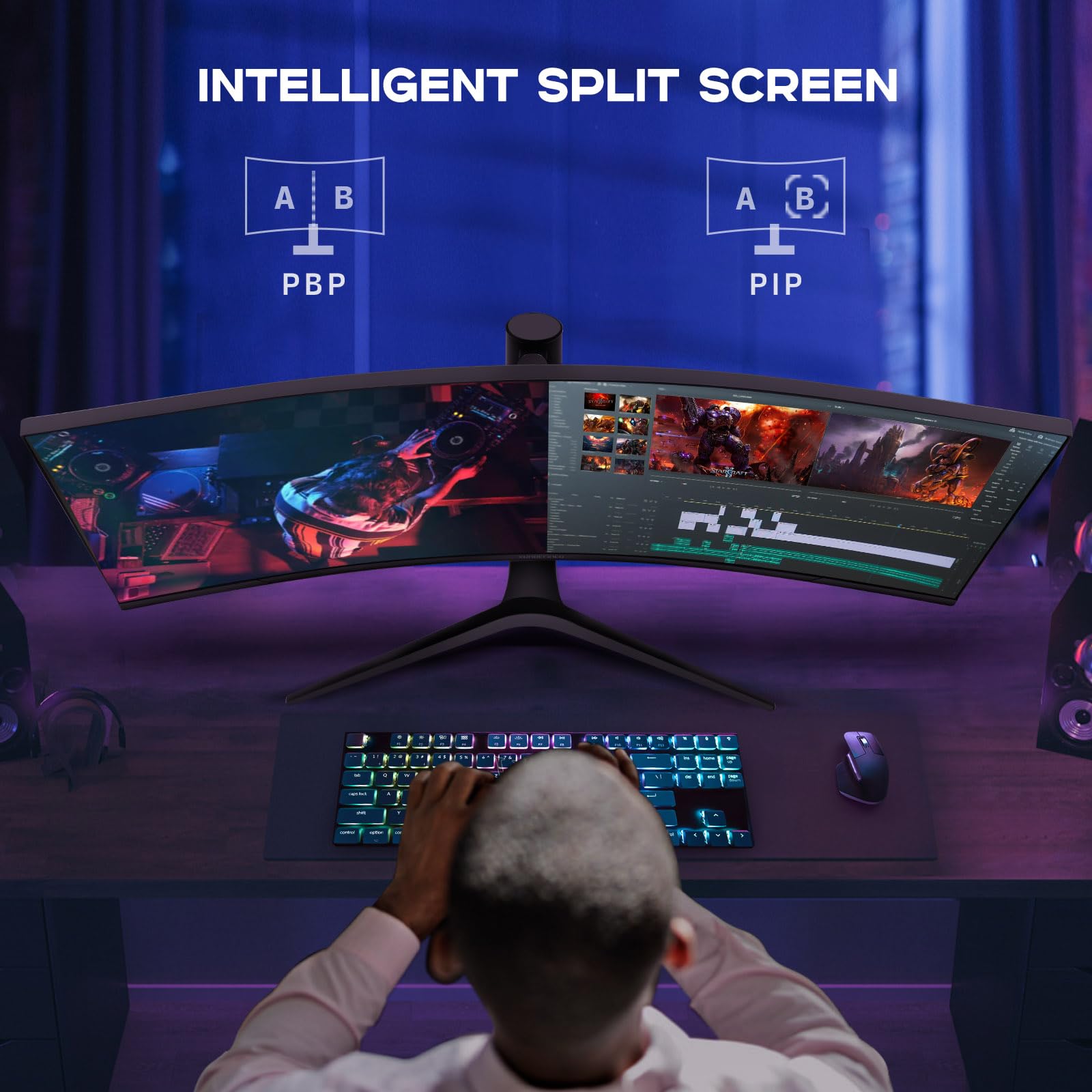 - See More And Do More, The 21:9 aspect ratio provides you with 30% more screen space versus the conventional monitor. The 1500r large computer monitor's wide resolution(3440 x 1440) offers seamless multi-screen display capabilities, expand your performance and productivity. The PIP/PBP function is perfect for gamers, professionals, and anyone who needs to multitask. With our advanced display technology, you can easily split your screen to manage multiple tasks simultaneous