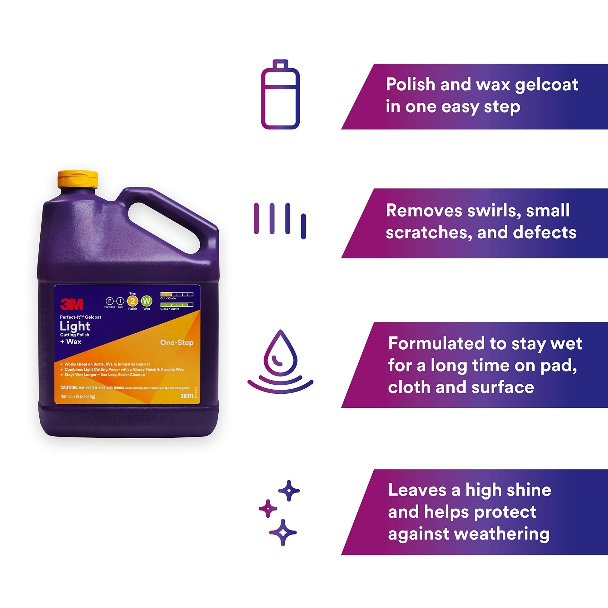 - PART OF A FAMILY OF BOAT CARE PRODUCTS – Use for light oxidation on any gelcoat surface, or use after 3M Perfect-It Heavy Cutting Compound for heavier oxidation on darker colored boats
