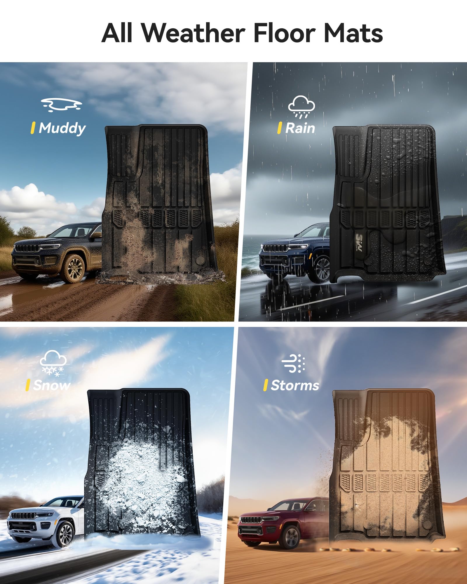 - PERFECT JEEP GRAND CHEROKEE L FLOOR MATS: Crafted with precision using 3D scanning technology and thermoplastic elastomer (TPE) material, perfect design for maximum coverage and protection with TPE material which ensures for jeep grand cherokee L 2021-2024 2025 6 seat (not fit for 7 seat)without center console more strength, resilience, durability and elasticity.