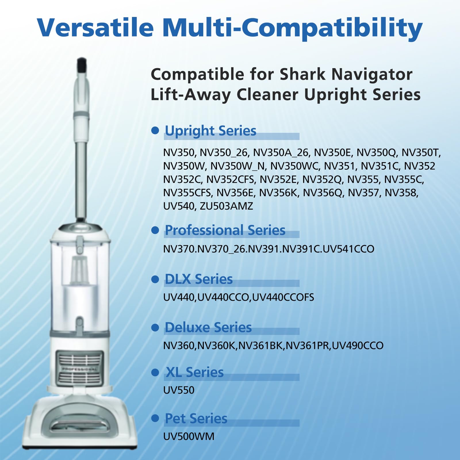 - Perfect Compatible with Shark Navigator Lift Away Models: CU510, NV350_26, NV350A_26, NV350E, NV350Q, NV350T, NV350W, NV350W_N, NV350WC, NV351, NV351C, NV351WM1, NV351WM2, NV352, NV352C, NV352CFS, NV352E, NV352Q, NV354C, NV355, NV355-26, NV355C, NV355CFS, nv356E, NV356K, NV356Q, NV357, NV358, NV358BRN, NV360, NV367, NV360K, NV361BK, NV361PR, NV370, NV370_26, NV380, NV391, NV391C, UV440, UV440CCO, UV440CCOFS, UV490CCO, UV500WM, UV540, UV540CCO, UV541CCO, UV550, ZU503AMZ, CU500/CU512 series, Compare to Part # Xff350 & # Xhf350.