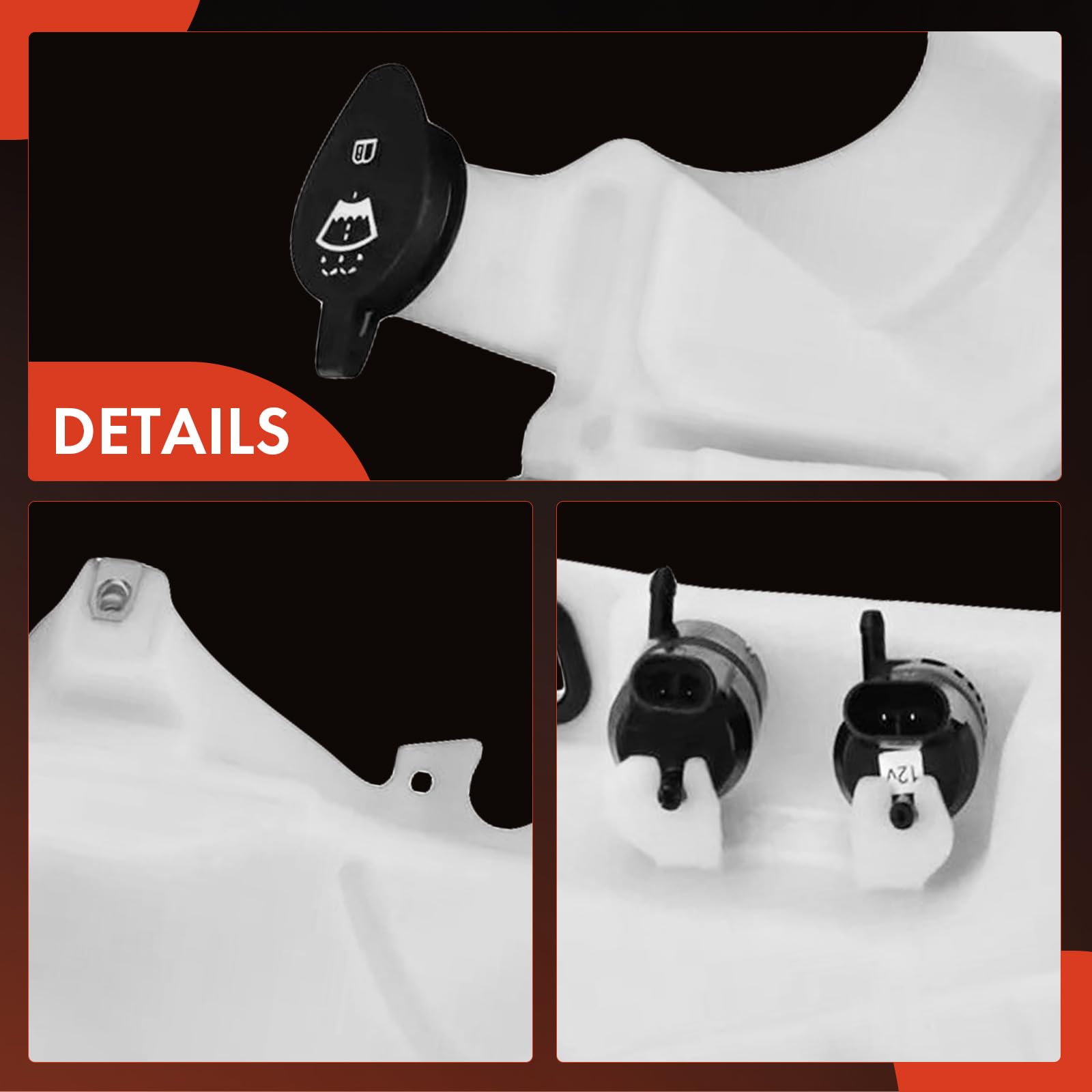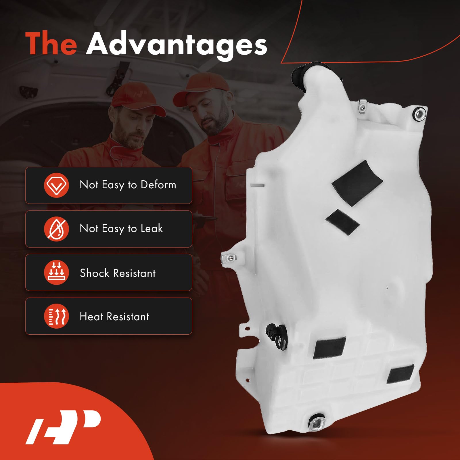 - [OE Performance]: By using outstanding material and exquisite technology, this A-Premium windshield washer reservoir is manufactured in accordance with the OE standards and bears the features of long lifespan and high performance. With multiple professional tests, its quality is guaranteed to restore your vehicle's malfunction.