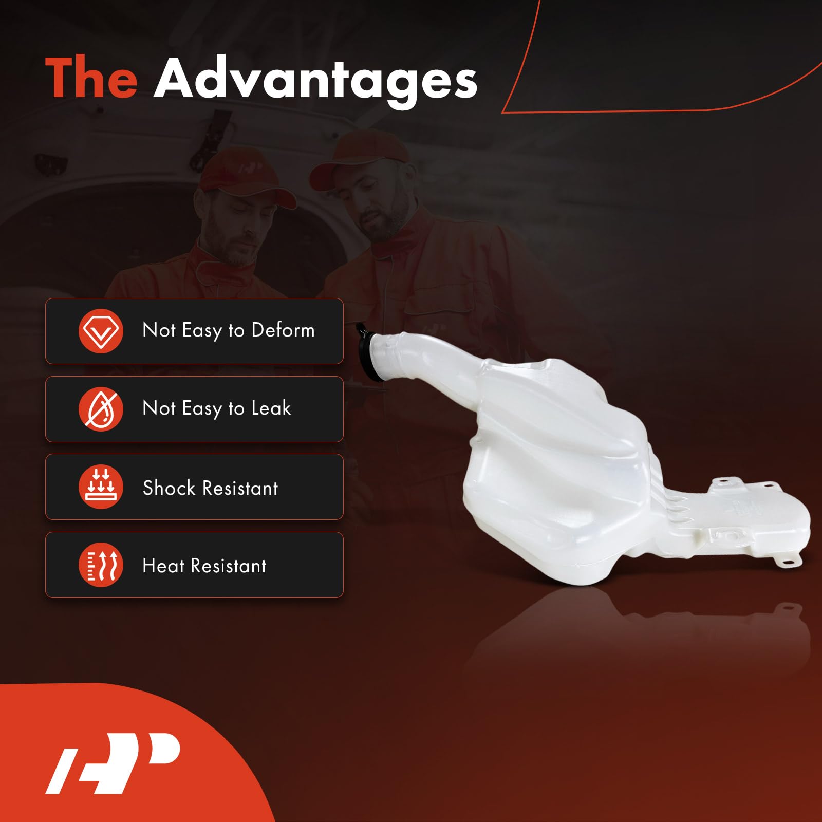 - [OE Performance]: By using outstanding material and exquisite technology, this A-Premium windshield washer reservoir is manufactured in accordance with the OE standards and bears the features of long lifespan and high performance. With multiple professional tests, its quality is guaranteed to restore your vehicle's malfunction.