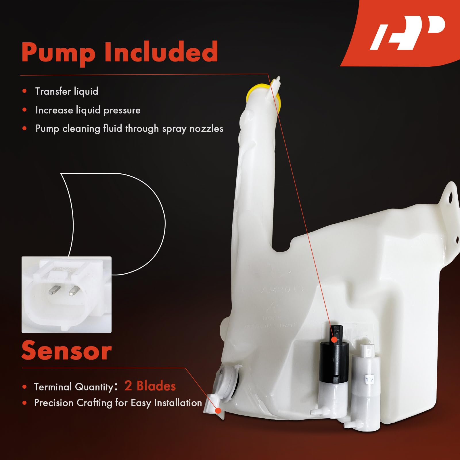 - [OE Performance]: By using outstanding material and exquisite technology, this A-Premium windshield washer reservoir is manufactured in accordance with the OE standards and bears the features of long lifespan and high performance. With multiple professional tests, its quality is guaranteed to restore your vehicle's malfunction.