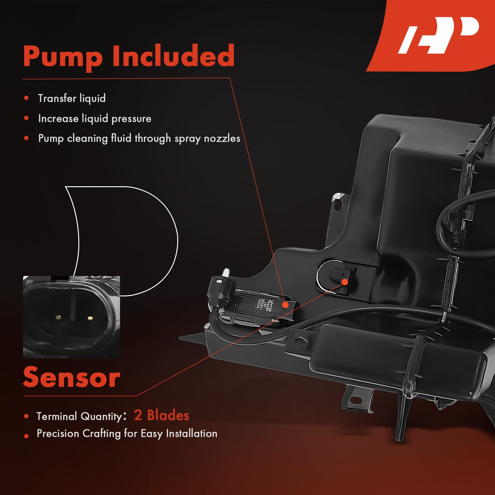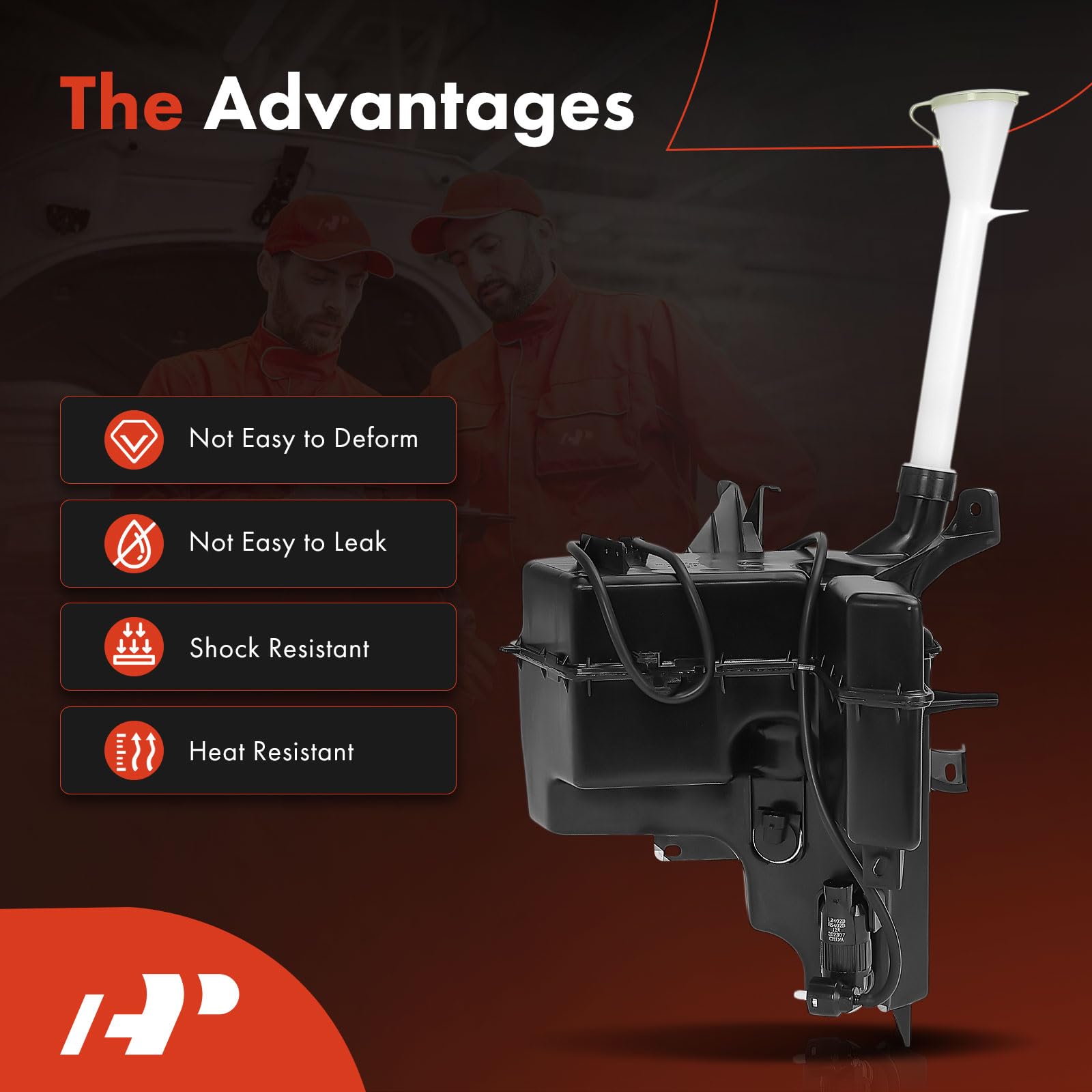 - [OE Performance]: By using outstanding material and exquisite technology, this A-Premium windshield washer reservoir is manufactured in accordance with the OE standards and bears the features of long lifespan and high performance. With multiple professional tests, its quality is guaranteed to restore your vehicle's malfunction.