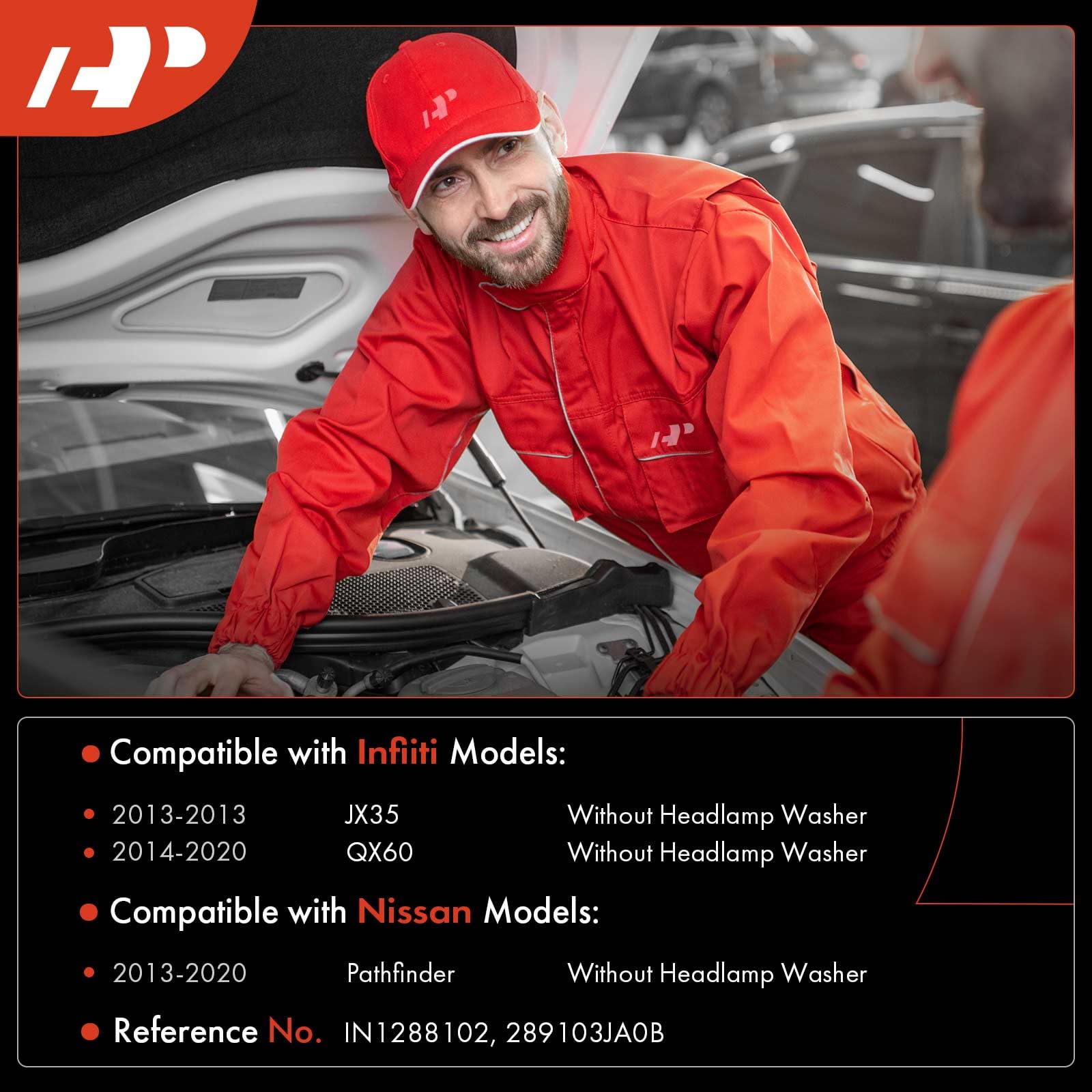 - [Vehicle Fitment]: Compatible with Nissan Pathfinder 2013-2020; Compatible with Infiniti QX60 2014-2020, JX35 2013 --- It fits the model without Headlamp Washer