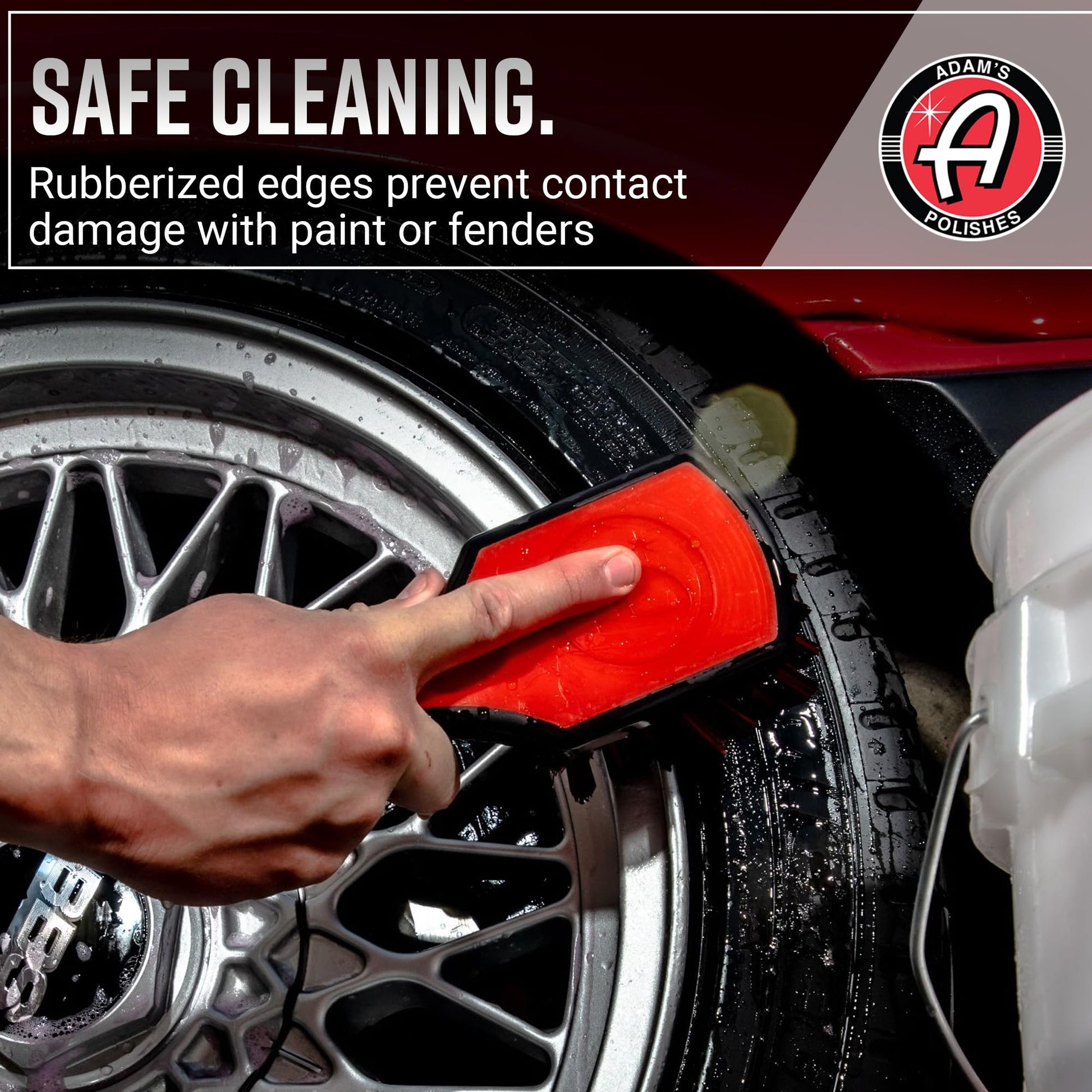 - ✅ USE WITH ADAM’S TIRE RUBBER CLEANER, WHEEL AND TIRE CLEANER or ALL PURPOSE CLEANER - Adam’s has several chemical cleaning supplies that can be paired with our Tire Brush for use on tires, rubber floor mats, or plastic floor liners. Although this brush can be used like a wheel brush, we suggest not using it as a wheel cleaning brush as the rigid bristles increase potential scratching on your wheel finish. To clean the face of your wheels, use Adam’s Wheel Scrub brush and Adam’s Wheel Woolie!
