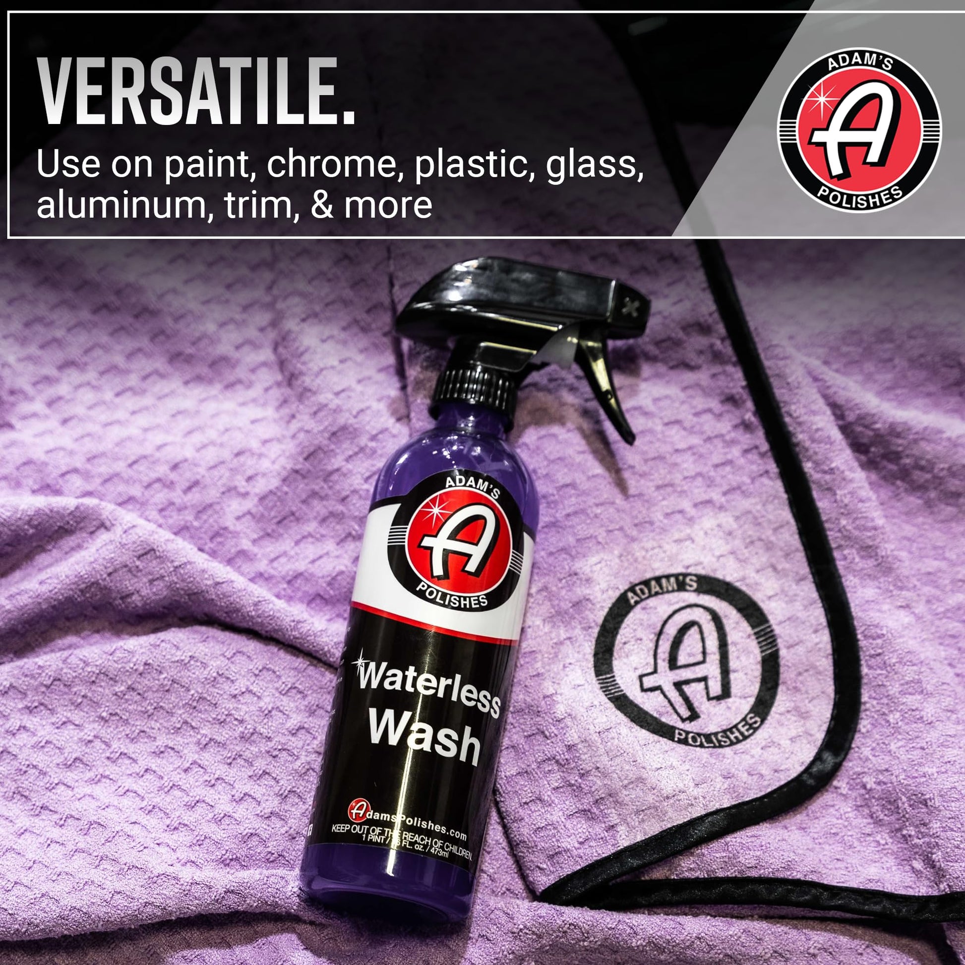 - ✅ SIMPLIFY YOUR CAR WASH KIT WITH NO WATER, NO GARDEN HOSE & NO MESS - Adam’s Waterless Wash is simply a spray & wipe cleaner that can be used on for cleaning light dust & dirt from your car. With maximum versatility, Waterless Wash can be treated like a car window cleaner, glass cleaner, & even a car wash soap without a bucket, foam cannon or foam gun. It even cleans wheels but we recommend our wheel cleaner for heavy jobs. For shine, follow with Adam’s Detail Spray for enhanced gloss!