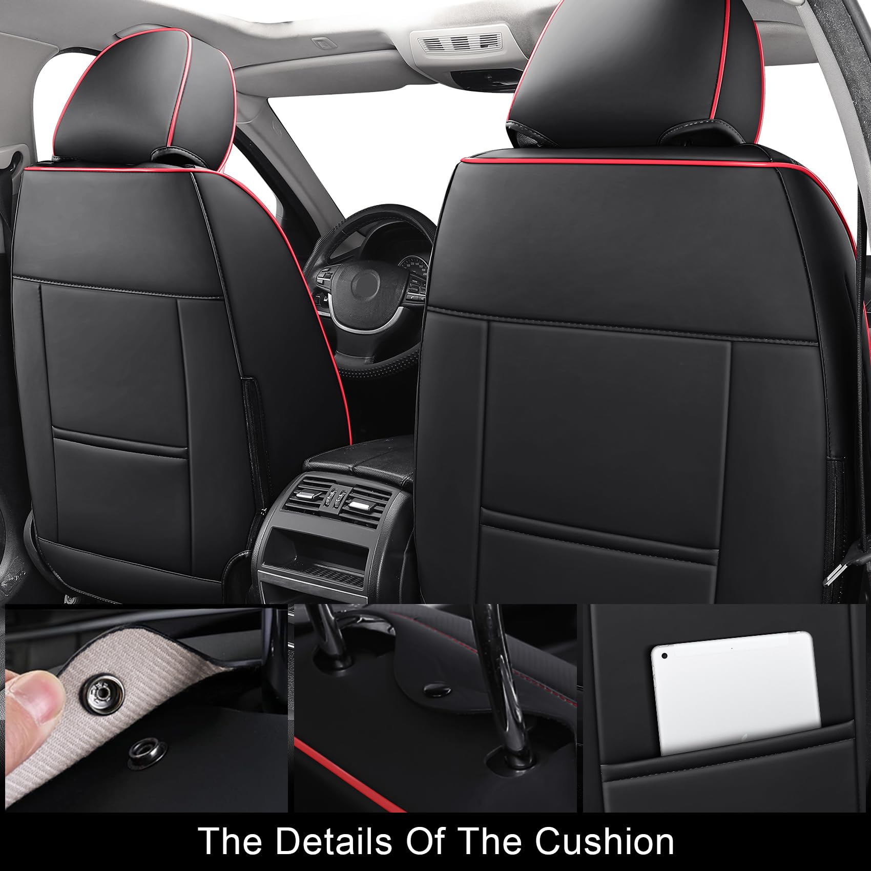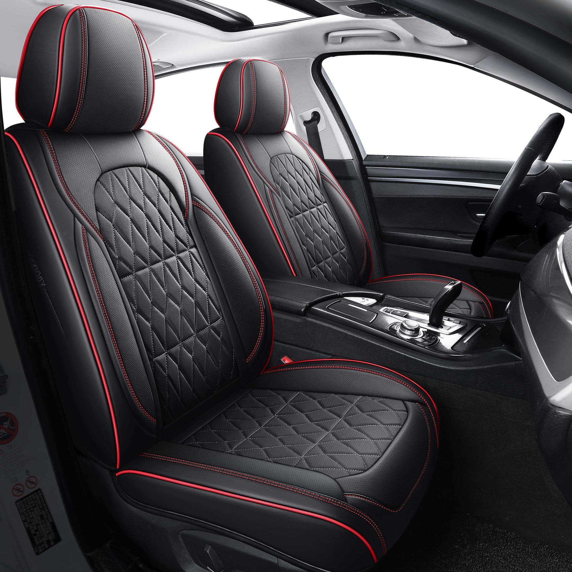 Aierxuan Leather Car Seat Covers Full Coverage Universal Fit Ford Focus Hyundai Elantra Honda Civic Toyota Corolla Nissan Murano Altima Rogue, Full Set, Black-Red