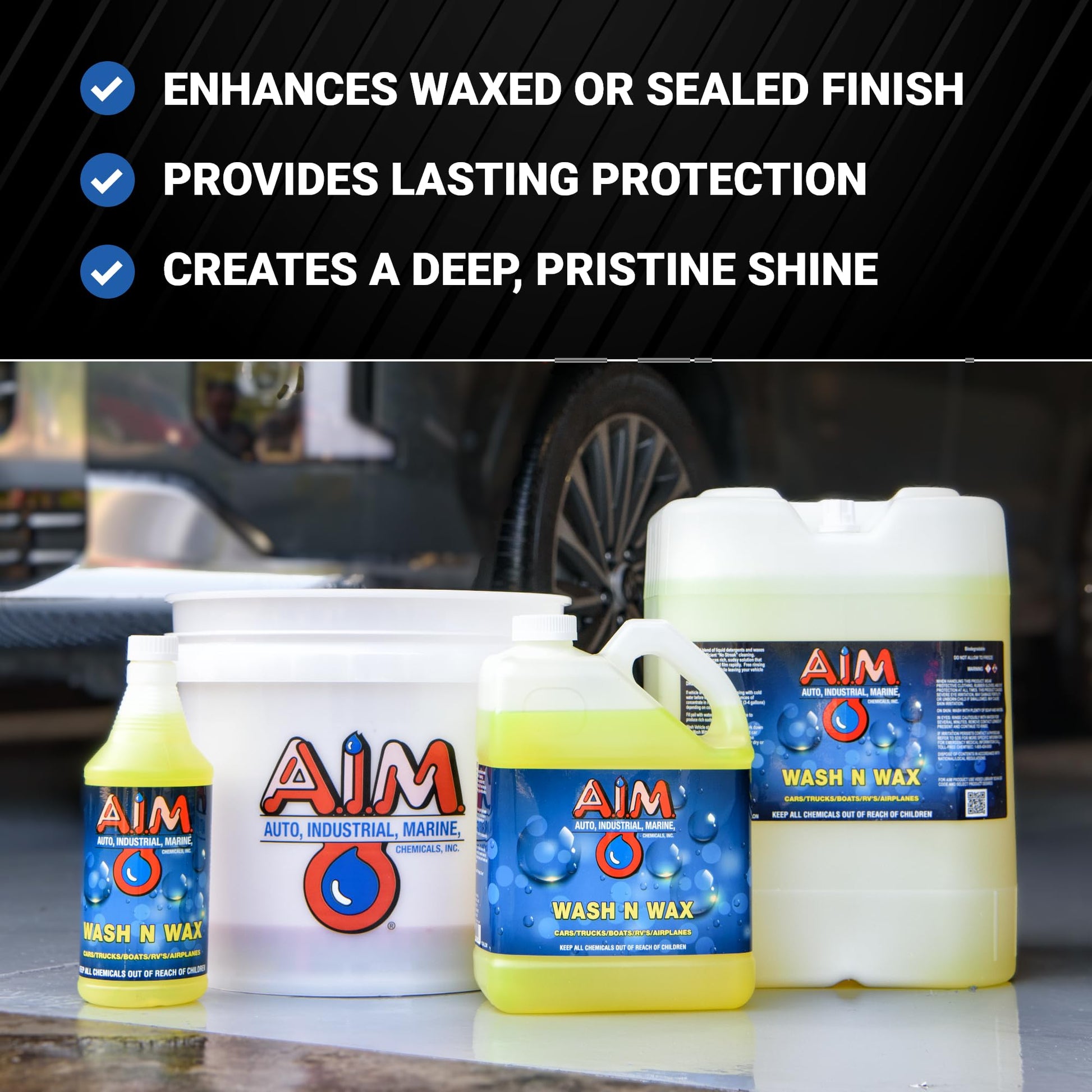 - AIM Chemicals Wash N Wax provides a Superior Clean: Transform your car wash routine withWash N Wax, using a foam cannon ensures a thick, luxurious foam coverage that loosens dirt and grime effortlessly, making your car sparkle with minimal effort.
