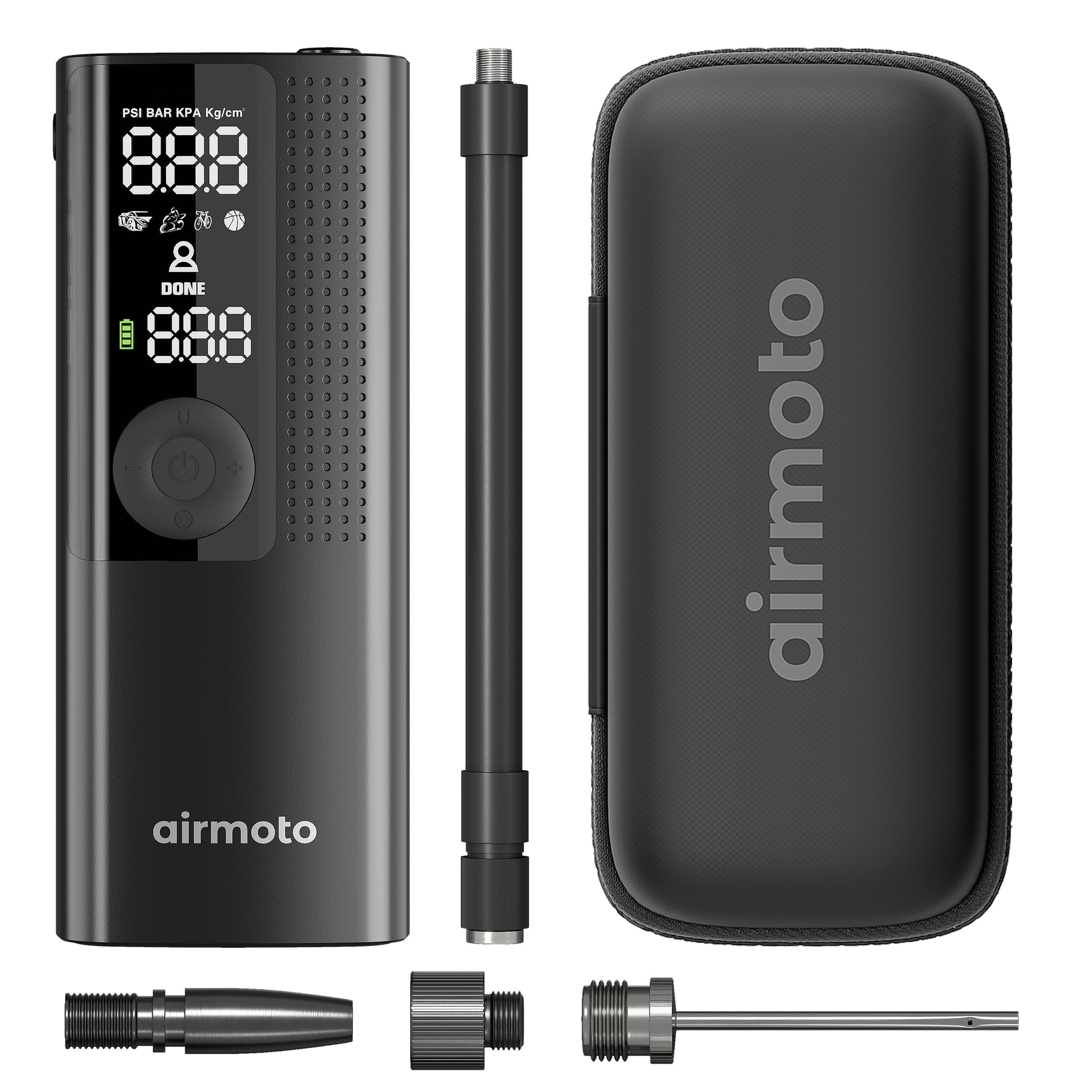 - QUICK & ACCURATE: Built with the highest quality materials, Airmoto is a portable tire inflator for car, trucks, SUVs, motorcycles, and bicycles. Quickly inflate your vehicle's tires in just minutes with precision accuracy up to 120 PSI. Small and compact car air pump that fits in your glove box or trunk.