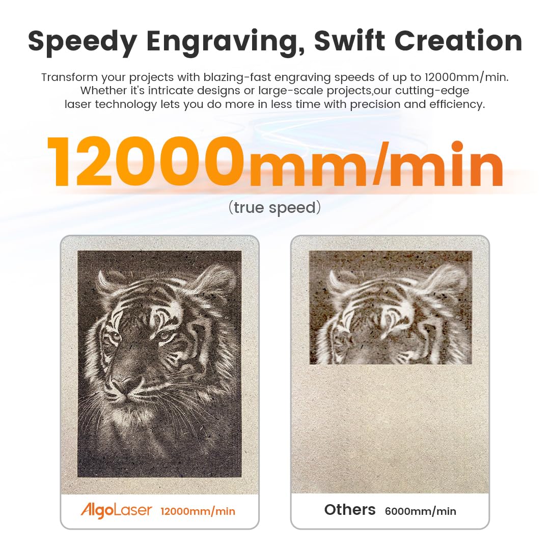 - Professional Precision for DIY and Business Projects:The AlgoLaser 10000mW engraver offers 0.05×0.1mm precision and up to 12000mm/min speed—perfect for home creators and small business use. It supports auto-resume after power loss and repeat-engraving without re-setting parameters. Whether crafting gifts, signs, or custom goods, this tool delivers reliable results with sharp detail for both beginners and experienced makers.