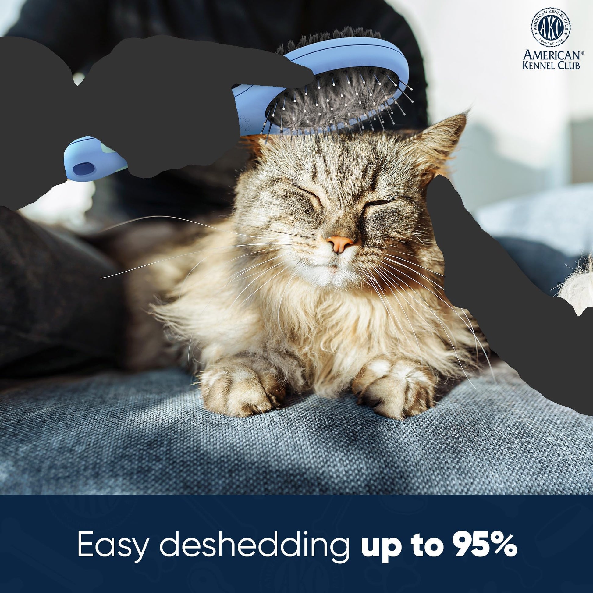 AMERICAN KENNEL CLUB AKC Pet Grooming Brush for Dogs and Cats - 2-in-1 Deshedding and Detangling Brush with Dense Nylon Bristles, Removes Loose Hair for Short and Long Coat Dogs and All Breeds