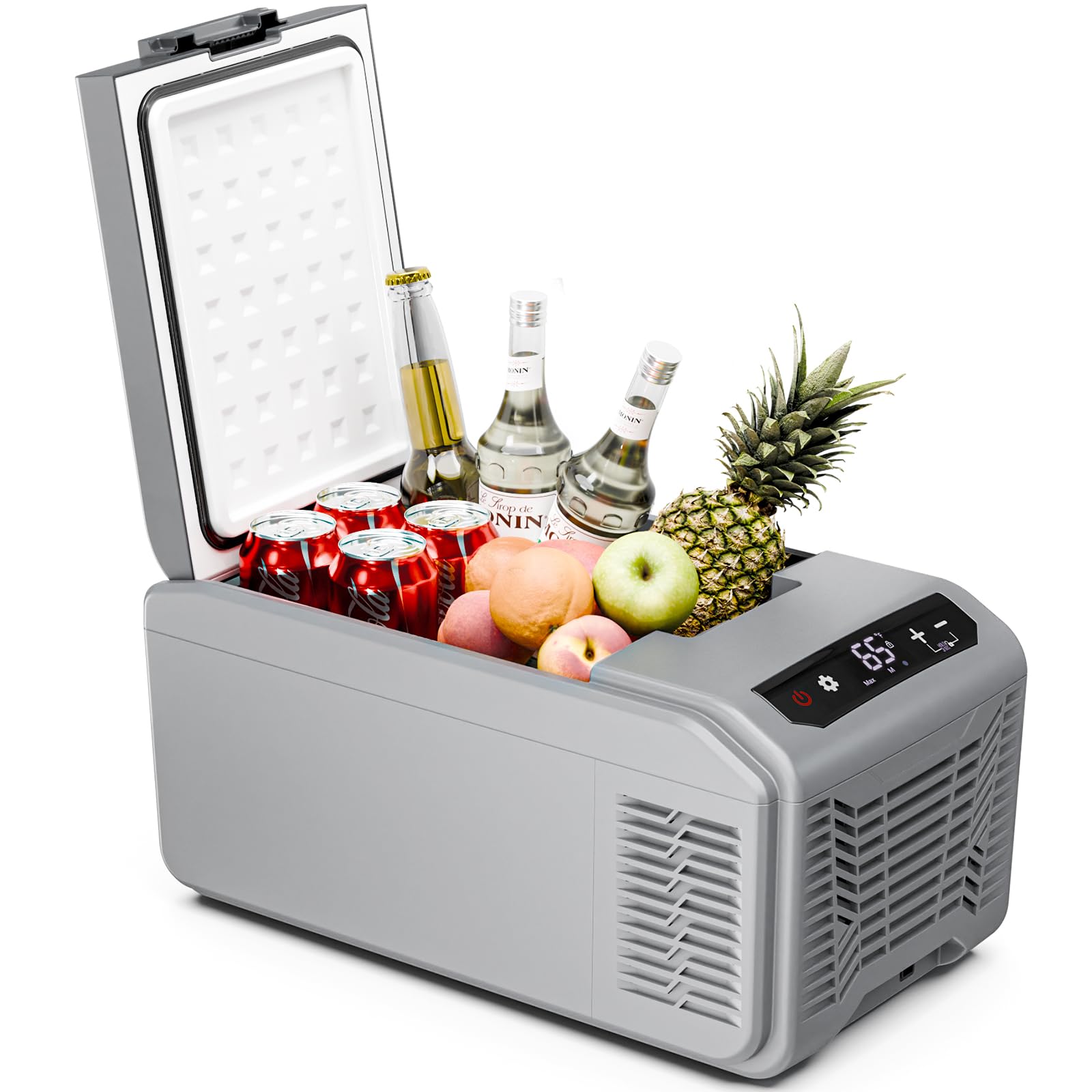 - Compact Size: 15L capacity, which can be easily put in your car trunk. The car refrigerator is equipped with a simple LCD control panel, which allows you to control the temperature from -4℉-68℉ as your needs, which easy for you store cosmetics, food and beverages.