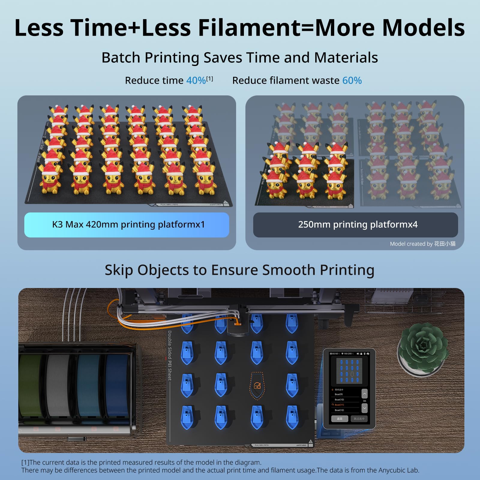 - 【420x420x500mm Jumbo-Sized Build Area】Print Big, Print Seamless! Anycubic Kobra 3 Max boasts a massive 16.5'x16.5'x19.7' build volume, letting you create life-sized projects in one go—from pet playgrounds to full-scale DIY sand tables