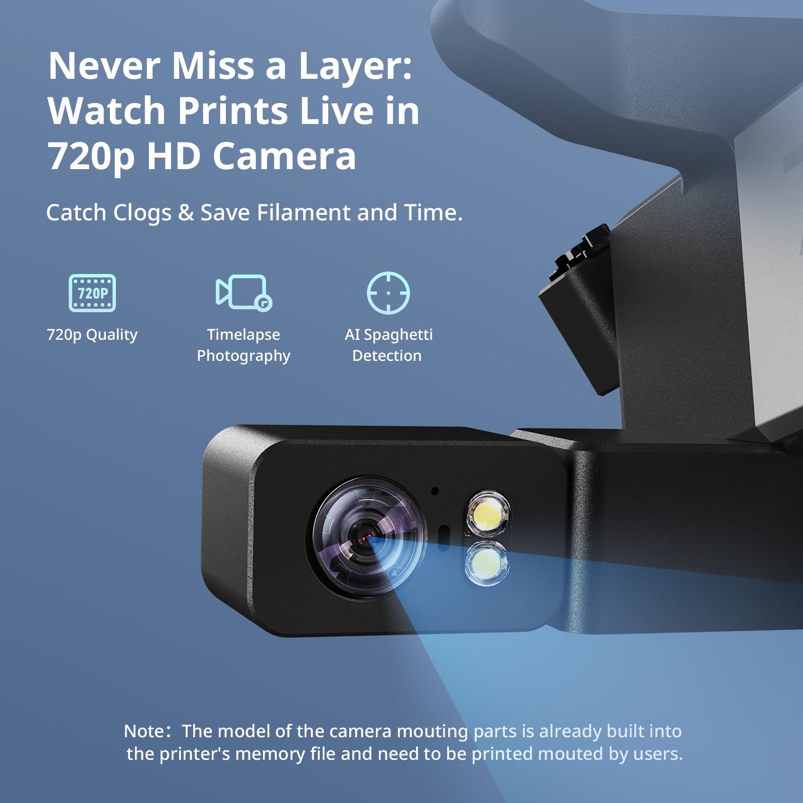 - 【Built-in 720p Camera for Remote Monitoring】Watch prints in real time with HD streaming, check progress from anywhere, and share stunning time-lapse videos