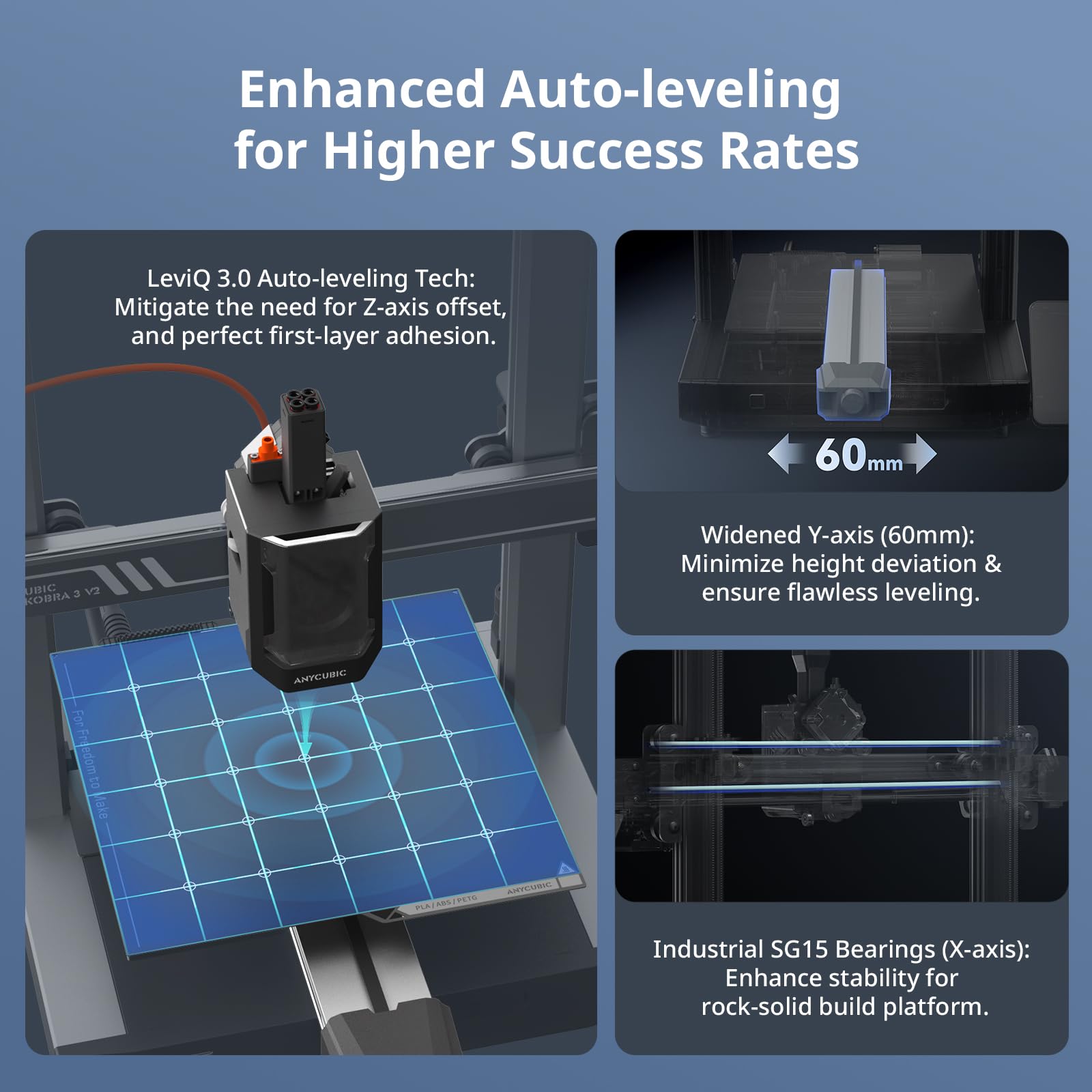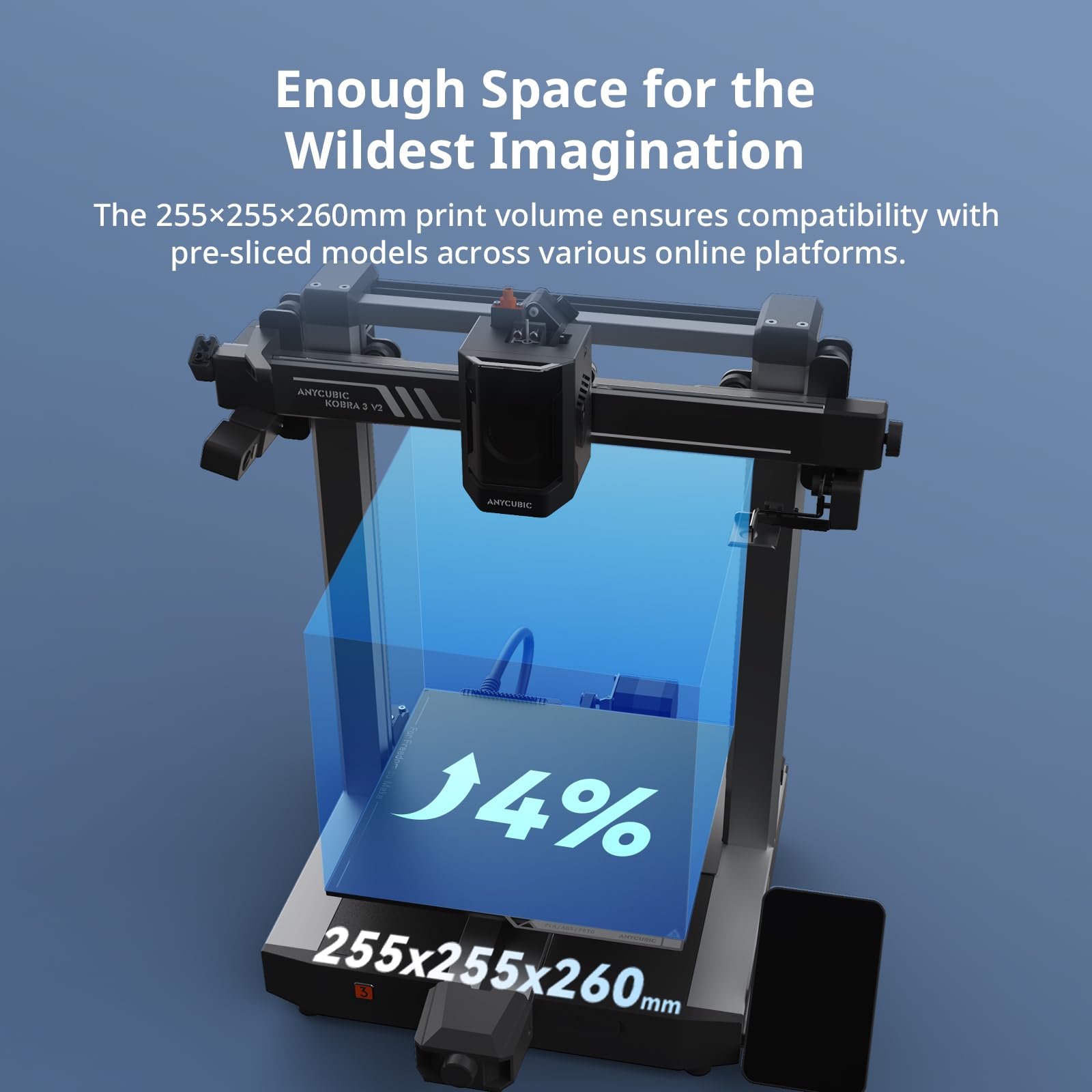Anycubic Kobra 3 V2 3D Printer Only, Support Multi-Color 3D Printing Need with Additional Anycubic ACE Pro, Max 600mm/s High Speed, Built-in Camera Higher Precision Higher Success Rates 255×255×260mm