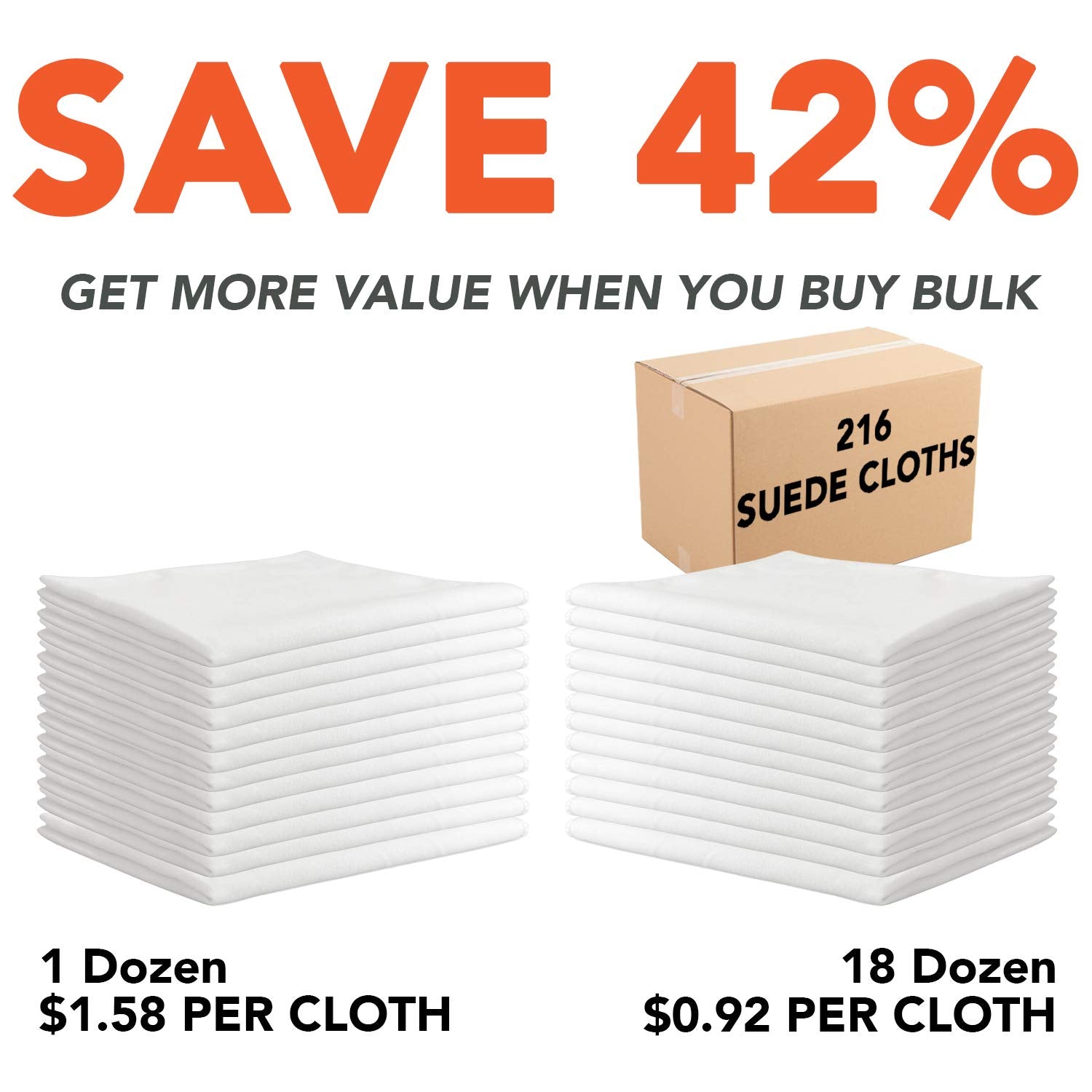 Arkwright Microfiber Suede Glass Cloths - (Case of 216) Absorbent Dish Drying Cloth, Bulk Cleaning Towel Set Perfect for Home, Kitchen, Gym, Cars, and Glass, 16 x 16 in, White