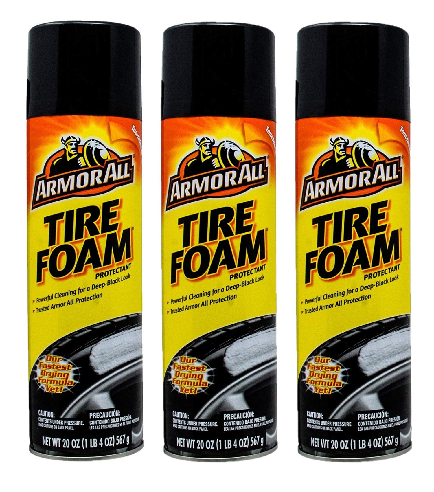 Details: Armor All Tire Foam Protectant not only cleans and conditions your tires, but it also help prevent ozone degradation, which can cause drying, cracking and fading. This intense foaming cleaner activates on contact, floating dirt away without scrubbing, while conditioners nourish and restore tires' natural beauty and deep, black appearance. Blocking agents in this car tire cleaner protect your tires from harmful elements that can cause cracking and fading over time. Fast and easy to use, simply apply this auto cleaner spray to wet or dry tires and let dry.