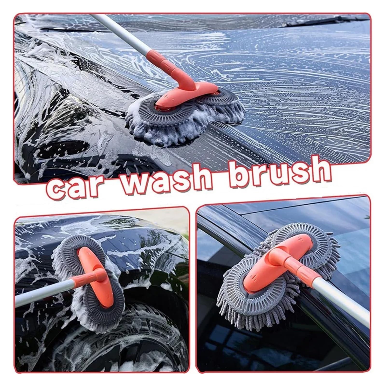 ARTYNSH Car Washer Mop Foam Wash Brush Double Brush Head Roof Window Cleaning Maintenance Three-Section Telescopic Mop Car Accessories(1 Mop and 1 Mop Head)