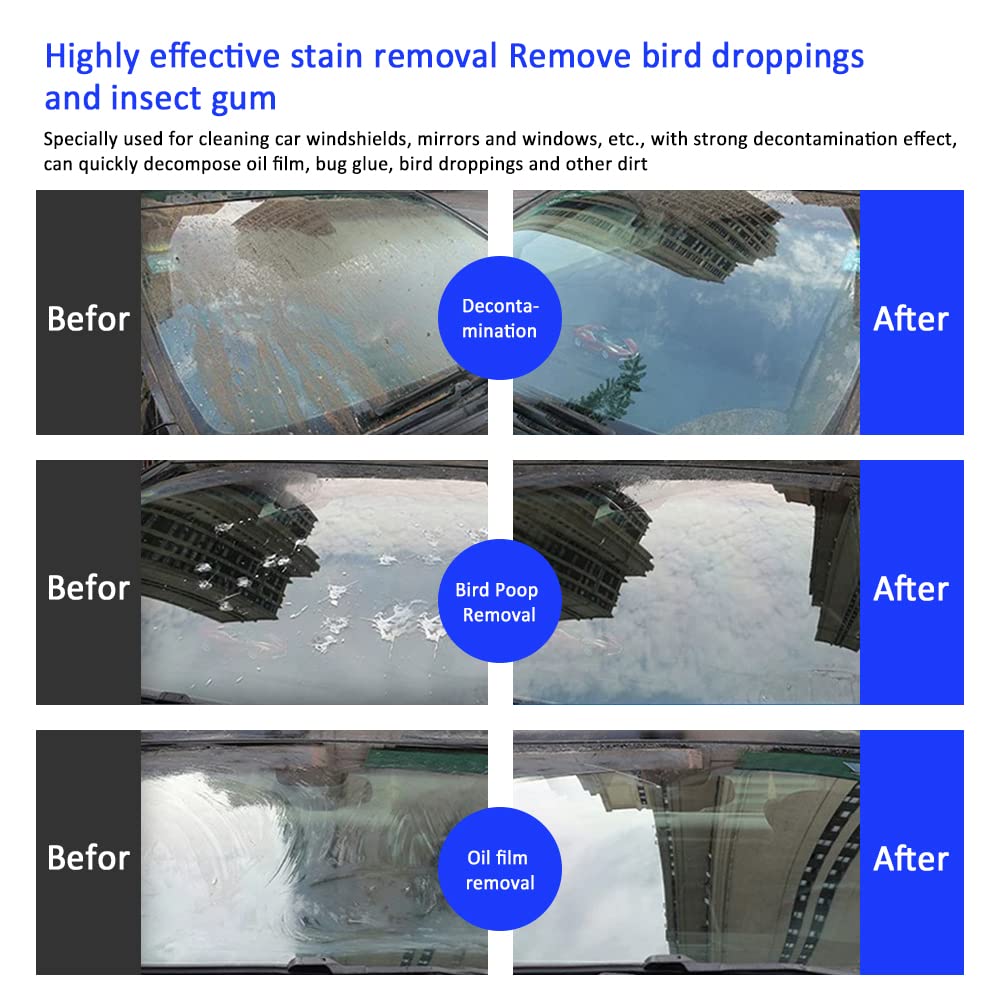 - [Efficient cleaning]: This wiper fluid concentrate can effectively clean and lubricate the windshield (clean dust / sand / bird droppings / insects splashes and other dirt on the windshield), reduce the friction between wiper and windshield, and keep the windshield clean