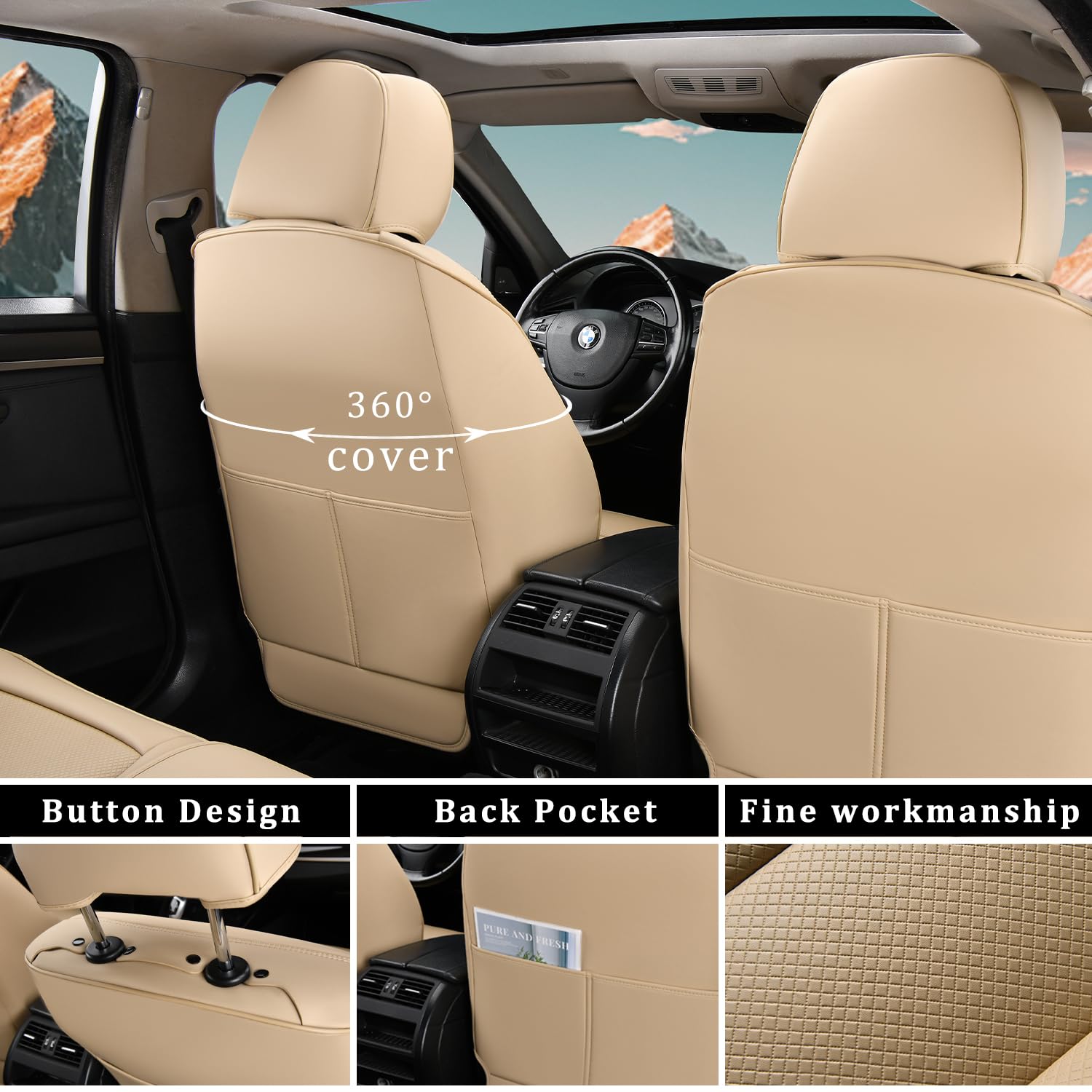 Aupaver Leather Seat Covers Full Set, Waterproof Seat Cover for Cars 5 Seats, Luxury Leatherette Car Seat Cushion, Front and Rear Protectors Automotive Seat Covers for Sedan SUV Pick-up Truck, Beige