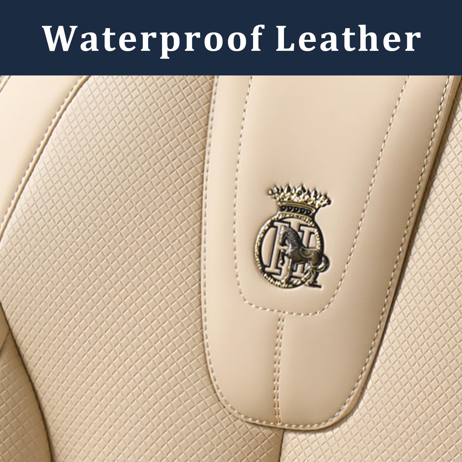 - đ„ăPREMIUM LEATHERăđThese attractive car seat covers feature a stylish look, crafted from premium perforated nappa leather and durable faux leather. They are extremely soft, durable, waterproof, and scratch-resistant, making them perfect for everyday use.