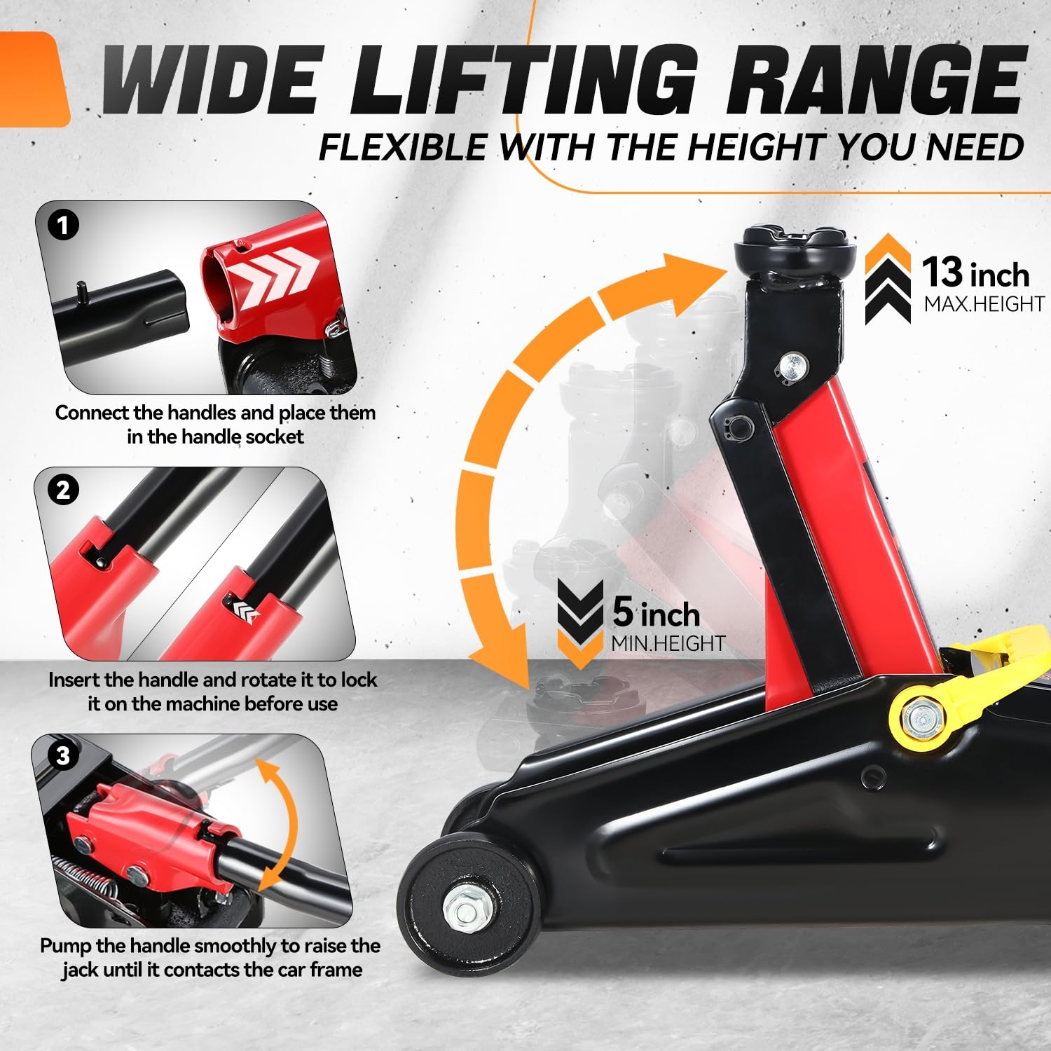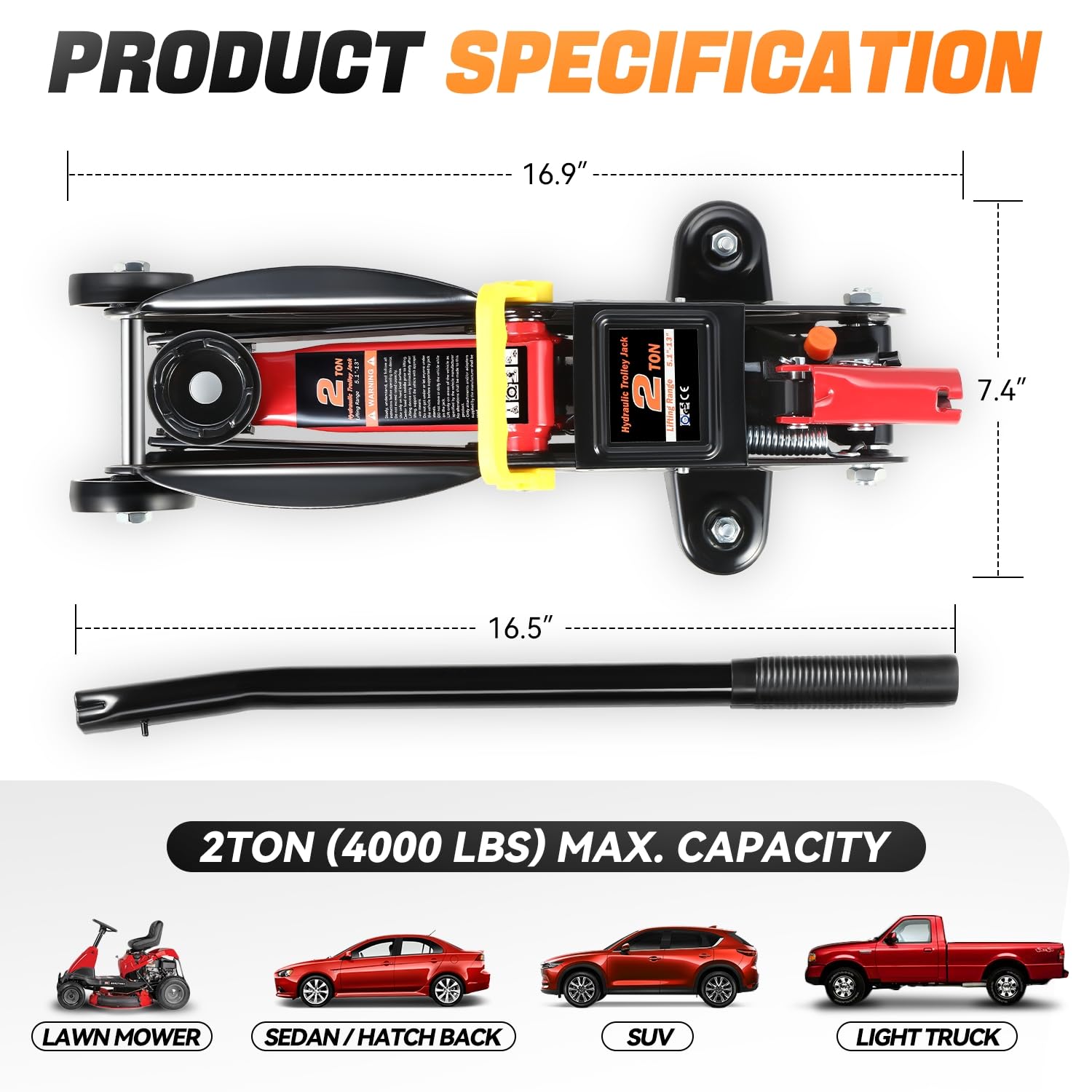 - 【Product Description】Our 2 ton floor jack, which can help support raised loads, allows you to lift your vehicle more conveniently.