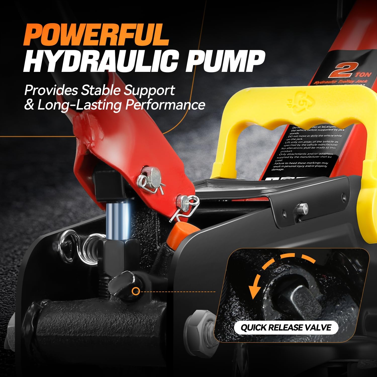 - 【Great Function】This 2 ton garage car jack is a lightweight design, and hydraulic lifting allows you to easily lift the jack to the desired height, making it great for garage service and heavy-duty industrial use.
