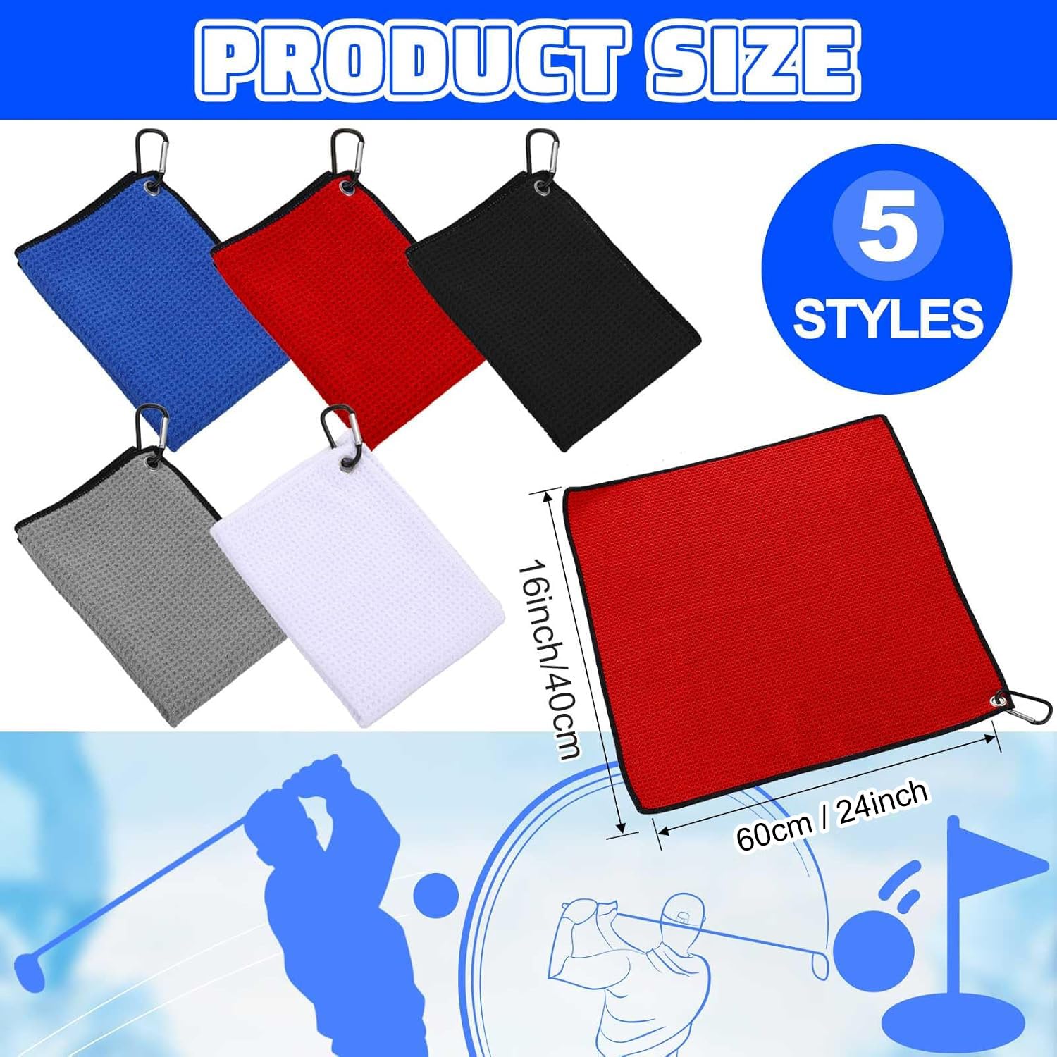 - Proper Size: each golf towel is about 16 x 24 inches/ 40 x 60 cm, proper size to fit in your pocket or handbag, easy to carry and store, which will not take up too much space, saving you time and energy