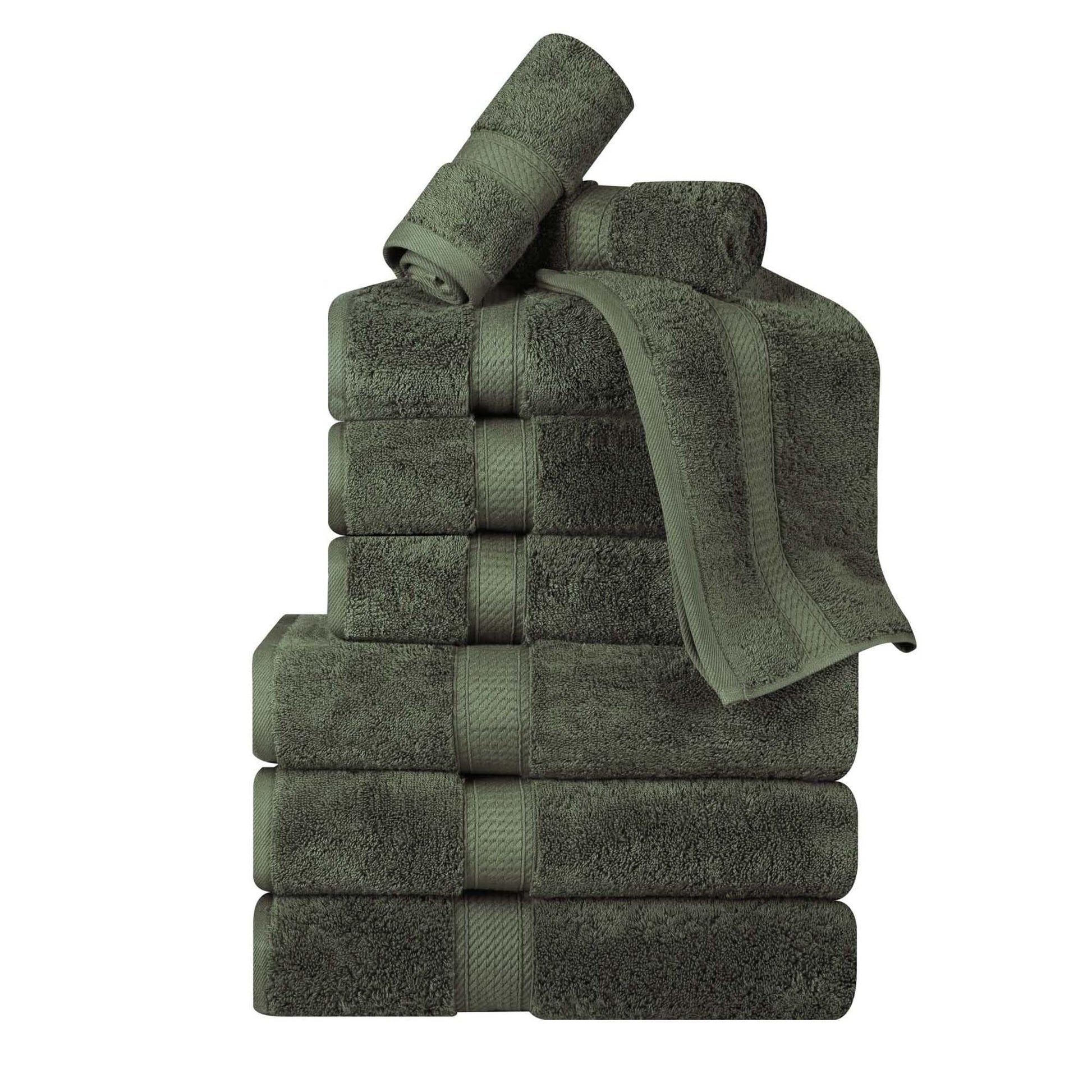 BNM Egyptian Cotton Heavyweight Towels, Ideal For Bathroom, Shower, Spa, Hotel, 800 GSM, Face/ Washcloths, Hand Towels, Bath Towels, Highly-Absorbent, Luxury Basics, 9 Piece Towel Set, Forest Green