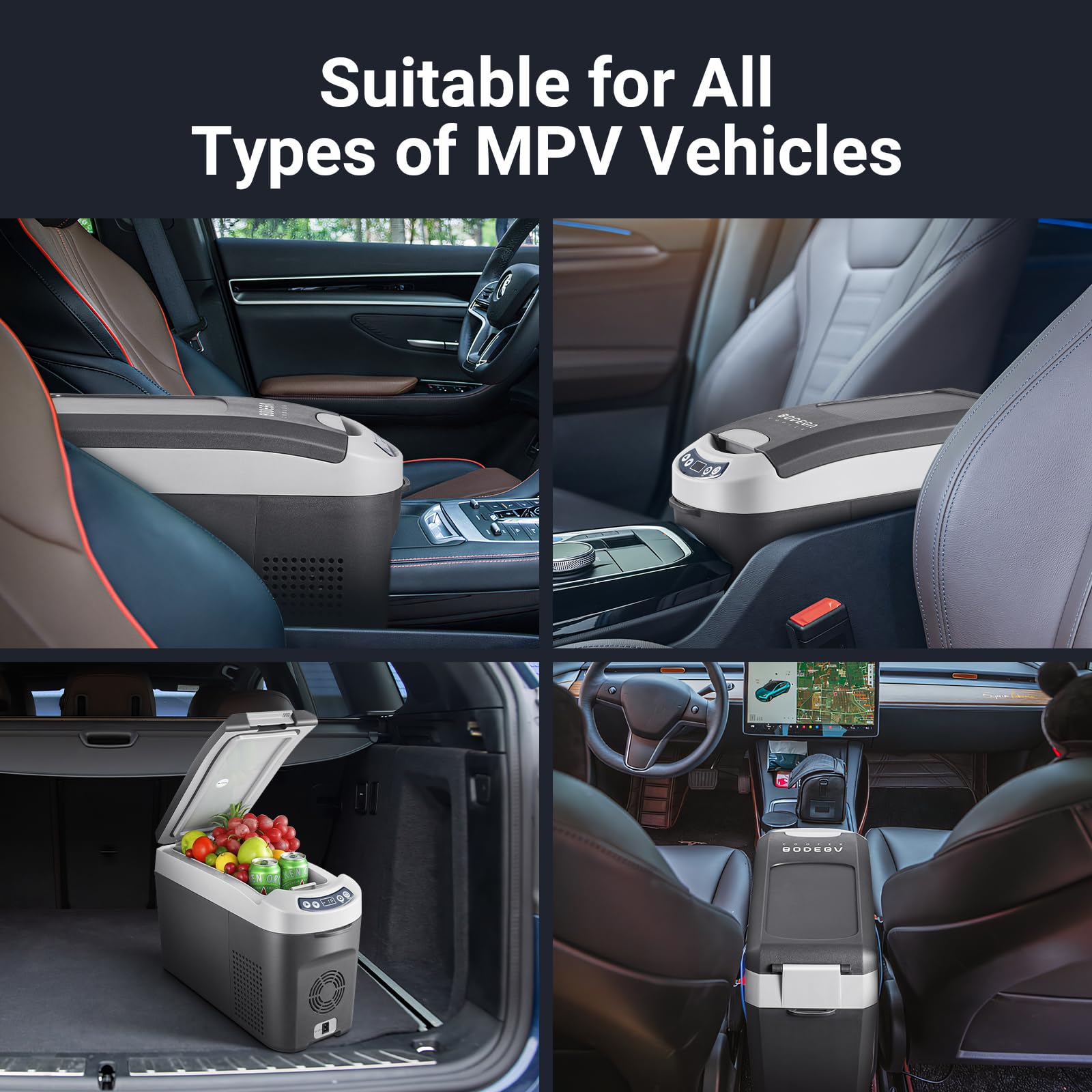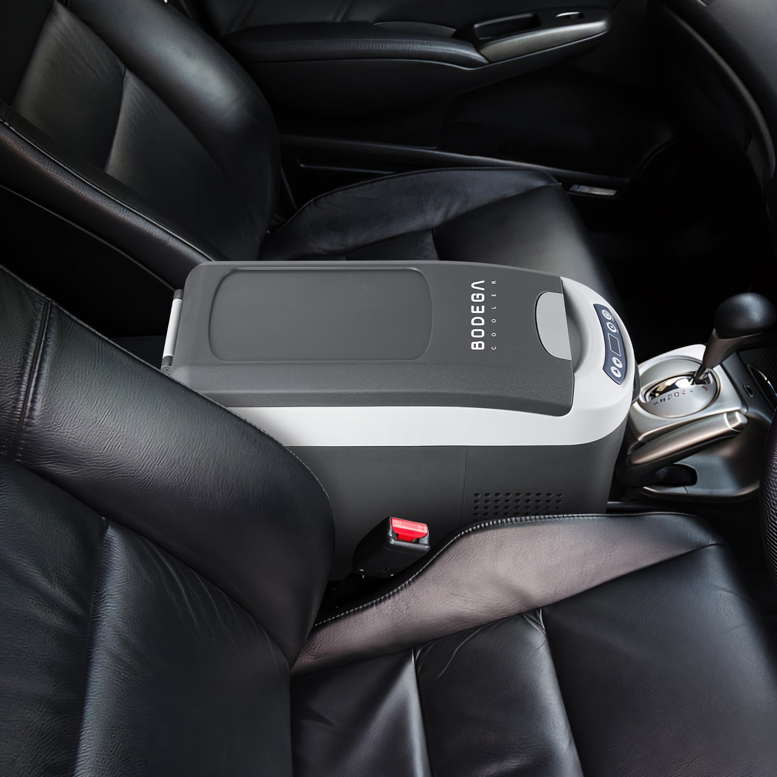 - Car Armrest Refrigerator: BODEGACOOLER 12v car refrigerator is designed to be installed on the car armrest. This portable fridge is compact and lightweight. It can serve as an armrest between the driver and passenger seats, and it fits perfectly in the rear seat or trunk of small cars