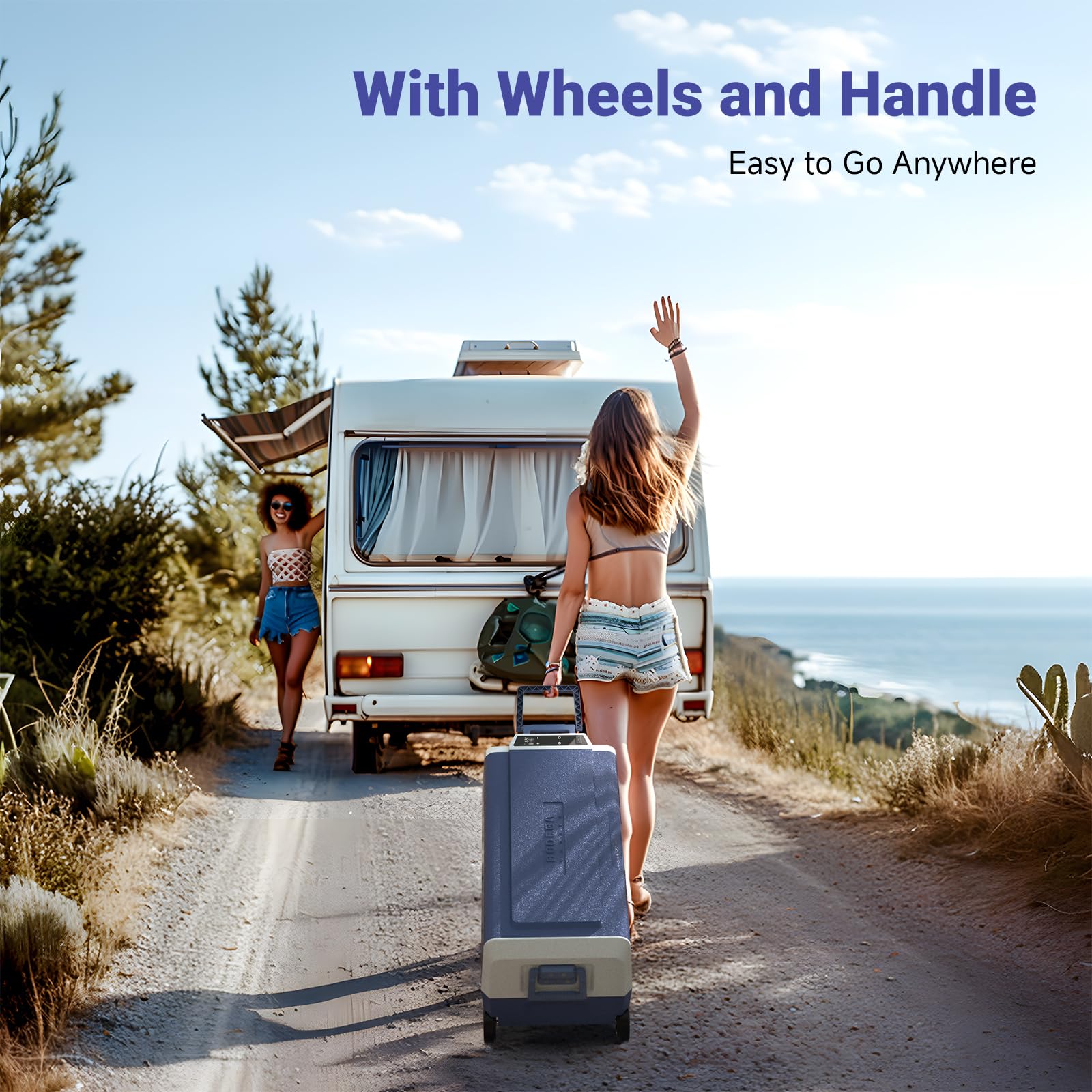 - VALUE PACK AND FRIENDLY DESIGN:You will get a portable car fridge,1 cigarette lighter connector,1 wall plug,1 wall plug adapter,1 user manual, baskets.The built-in LED light design let you easily to get things at night.The bottom drain hole is convenient for cleaning the 12 volt refrigerators.Our cooler for cars also includes USB charging port,our RV refrigerator 12v has portable stretchable handles and off-road wheels which increase its portability.It's perfect for outdoor activities.