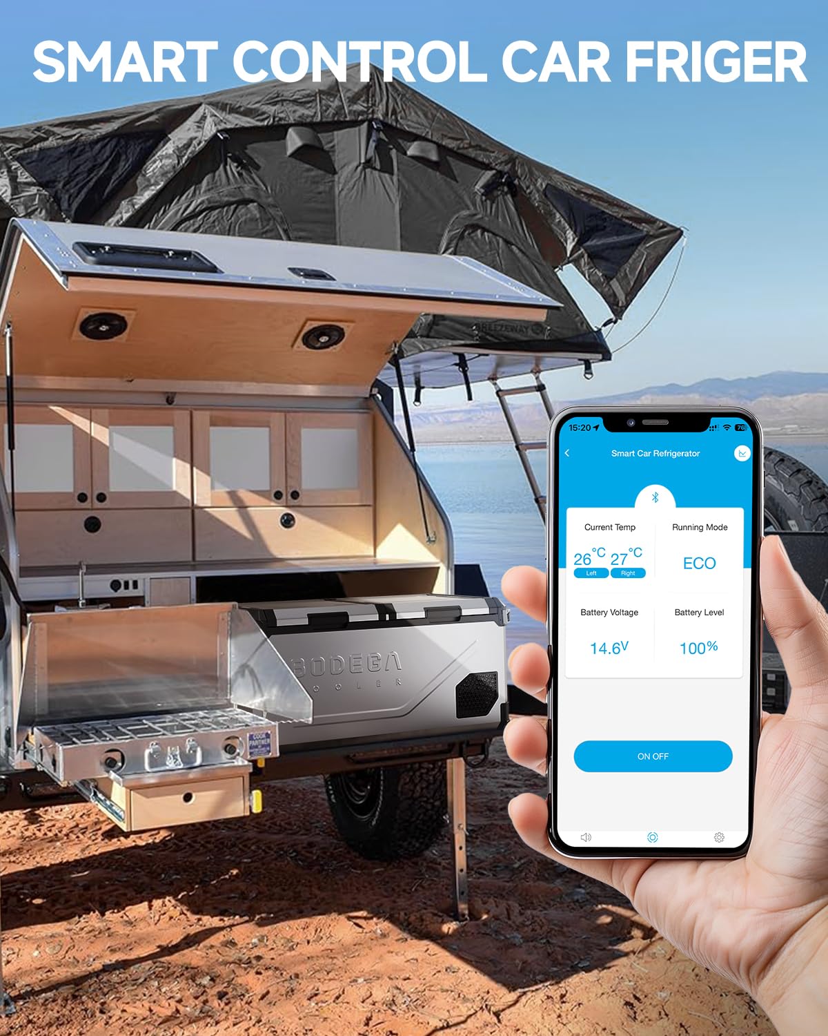 - 【79QT Large Capacity Dual Zone】BODEGA Aluminum Chassis withstands extreme road vibration and impacts. Dual independent zones (L: 48QT / R: 30QT | 79QT Total) maintain precise temps from -4°F to 68°F (-20°C to 20°C). Store 130+ cans, 85+ water bottles, or 30+ wine bottles with zero cross-temperature interference. Assign fridge/freezer roles per zone via App or manual override.'