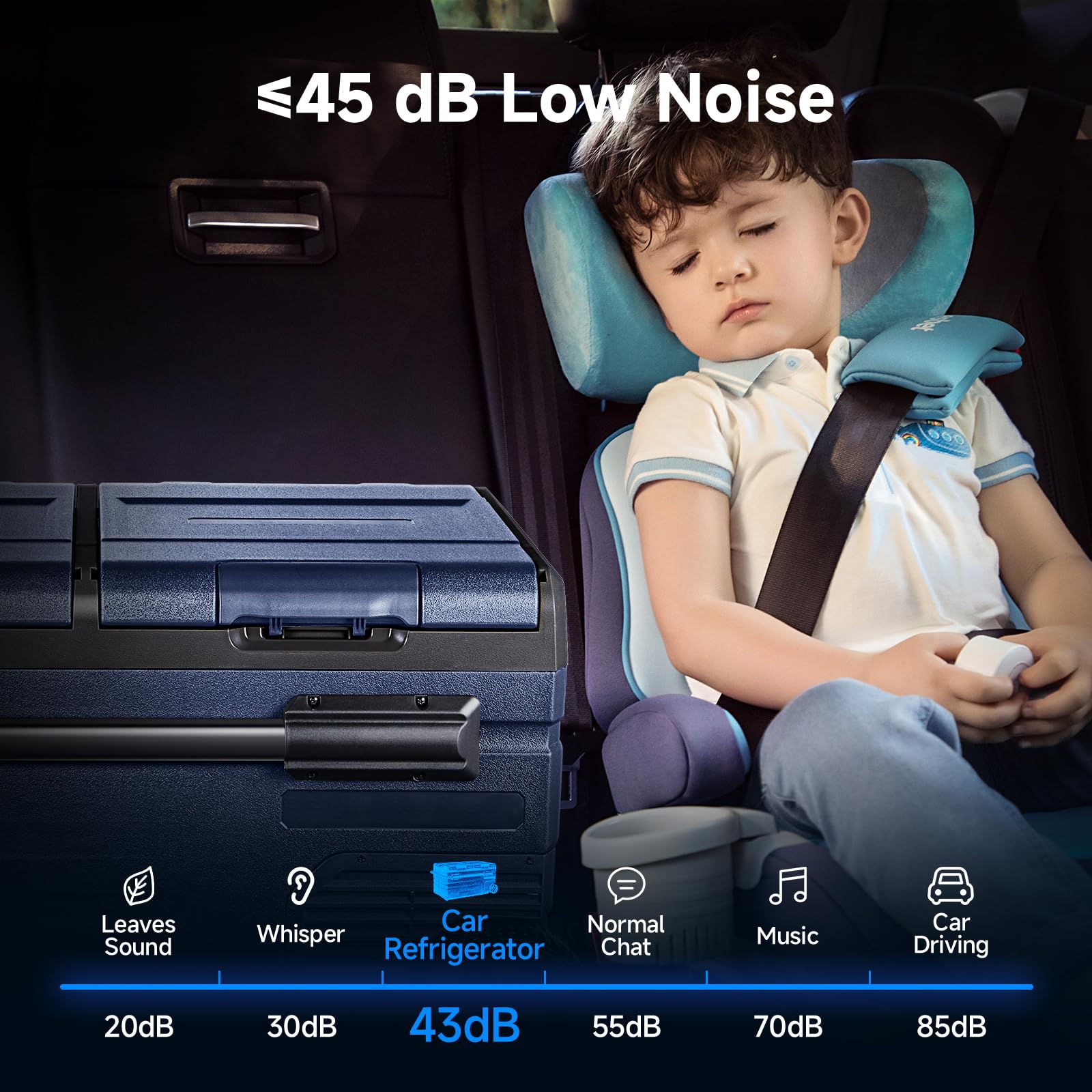 - EXTENSIBLE HANDLE & REMOVABLE DOORS:The detachable handle design of the portable fridge makes the car refrigerator easier to move and portable. The car refrigerator door is detachable and can be installed according to your applicable direction for flexible application.12v fridge equipped with a multi-functional non-slip base, the lateral displacement is greatly reduced. When your car is climbing at an inclination angle of 30 degrees, the car portable freezer can still run stably.