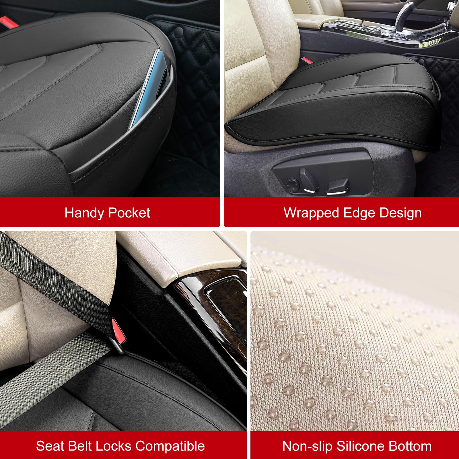 BOPUOVRE Car Seat Cover for Luxury & Comfort - PU Leather, Anti-Slip, Full Wrap Protection with Storage Pocket for Bottom Cushion - Universal Fit for 95% of Vehicles (Black,1 Piece)