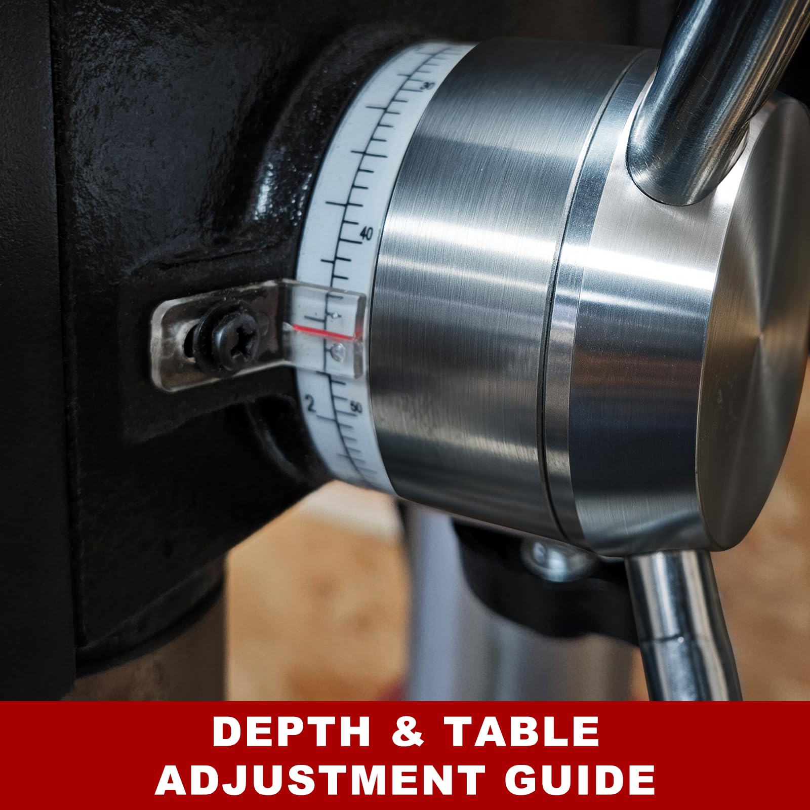 - Expanded Space & Stable Structure: The reinforced tall column offers increased vertical clearance and enhanced structural stability when handling heavier workpieces. With a 12' swing and 2' spindle travel, you’ll have the space to handle wider, taller, and thicker materials with ease, while the ±45° tilt-able worktable with angle guide, letting you drill at exact angles without shifting or guesswork