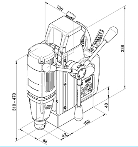 Details: AutoMAB 350 portable drill press is a fully automatic magnetic drilling machine with automatic feed, automatic reverse and automatic shut-off. Save time, increase cutting tool life, and increase profitability with the AUTOMAB 350 auto feed mag drill with 1-1/2' diameter hole cutting capacity. Included components: (1) 1” Pilot Pin (1) 2” Pilot Pin (1) Size 4 Allen Key (1) Gravity Fed Coolant Bottle Assembly (1) Heavy-Duty Carrying Case (1) Safety Strap (1) ¾” Weldon Tool Holder(Affixed) (1) Operating Manual