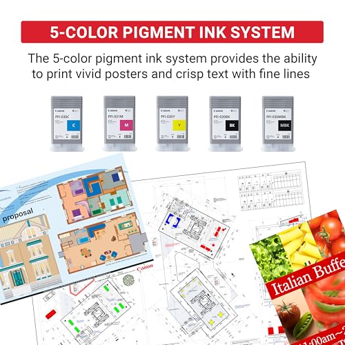 Details: Canon imagePROGRAF TM-240 24' - Large Format 5 Color Poster & Plotter Printer with media detection, color calibration, and 300 ml of ink