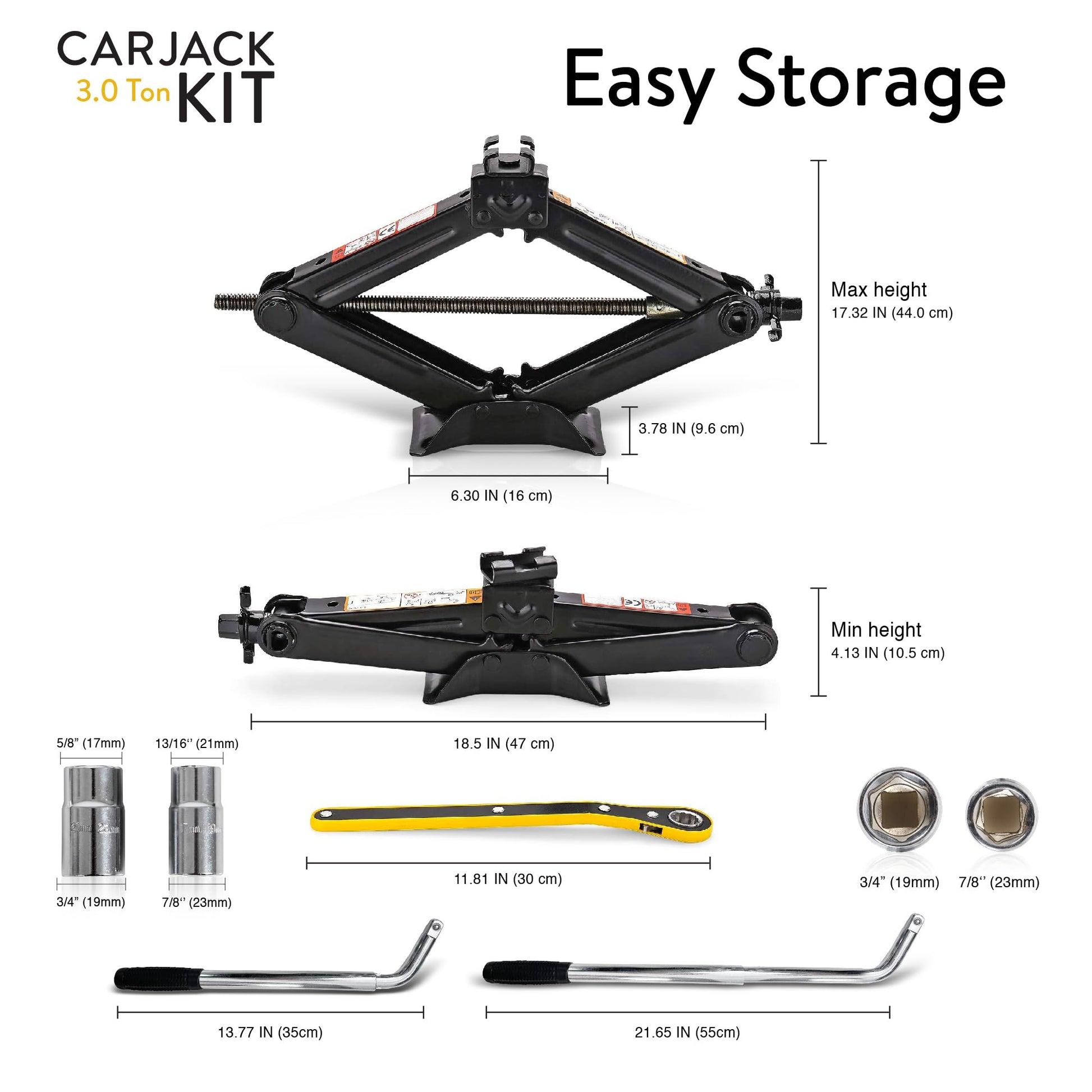 - ✅ PORTABLE & DURABLE STORAGE - Keep your Car Jack Kit organized and ready for emergencies with the included heavy-duty storage bag. Its compact design ensures easy storage in your trunk, while the durable fabric protects your tools from wear and tear, ensuring long-lasting performance. Perfect for road trips or daily commutes!