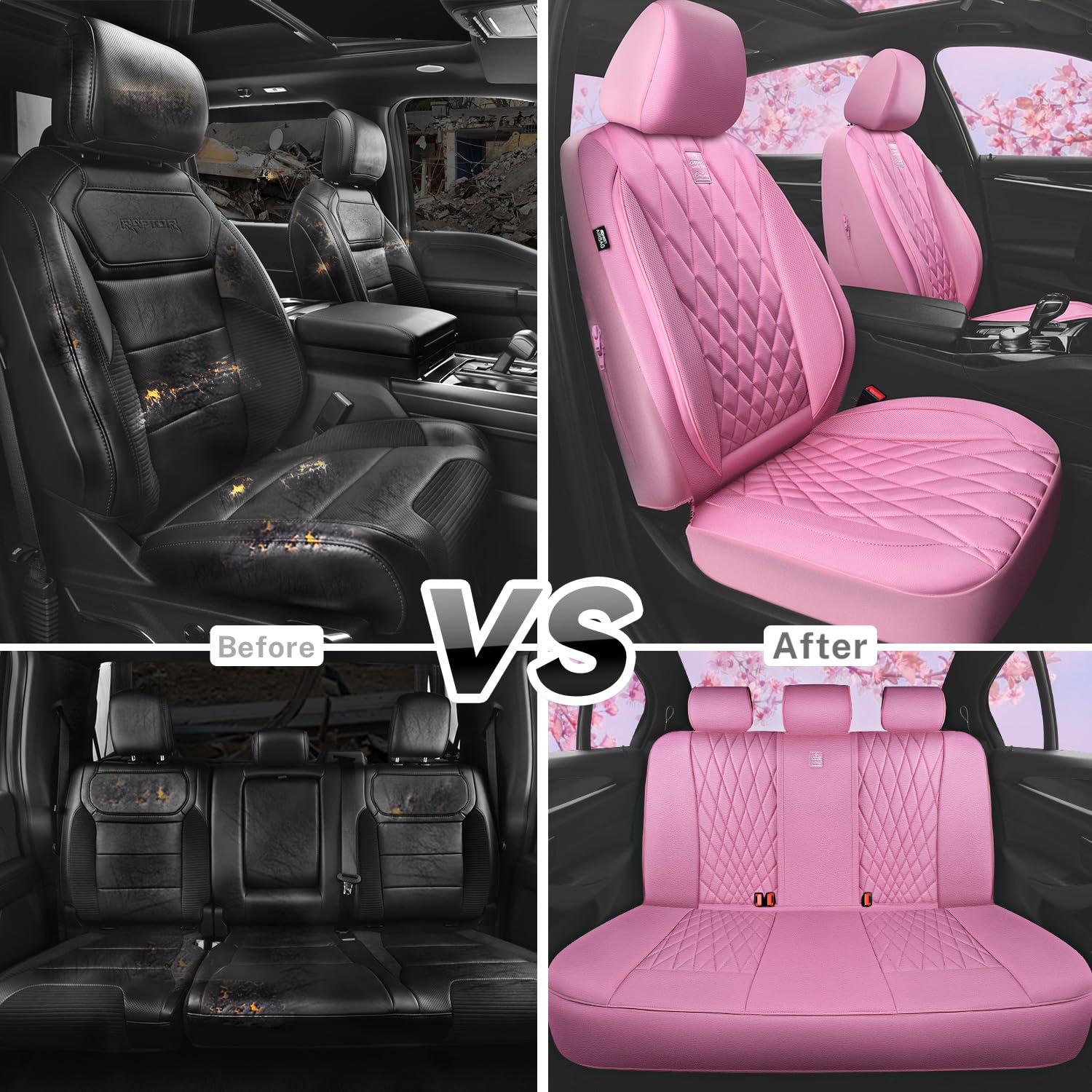 - 【ADVANCED LEATHER SEAT COVERS】The seat covers are made of high quality leather, providing full protection for your car seats. Waterproof, breathable and easy to clean. Protect your car seat covers from dust, scratches and other possible damages. Outstanding diamond stitching design adds luxury and fashion to your car's interior.