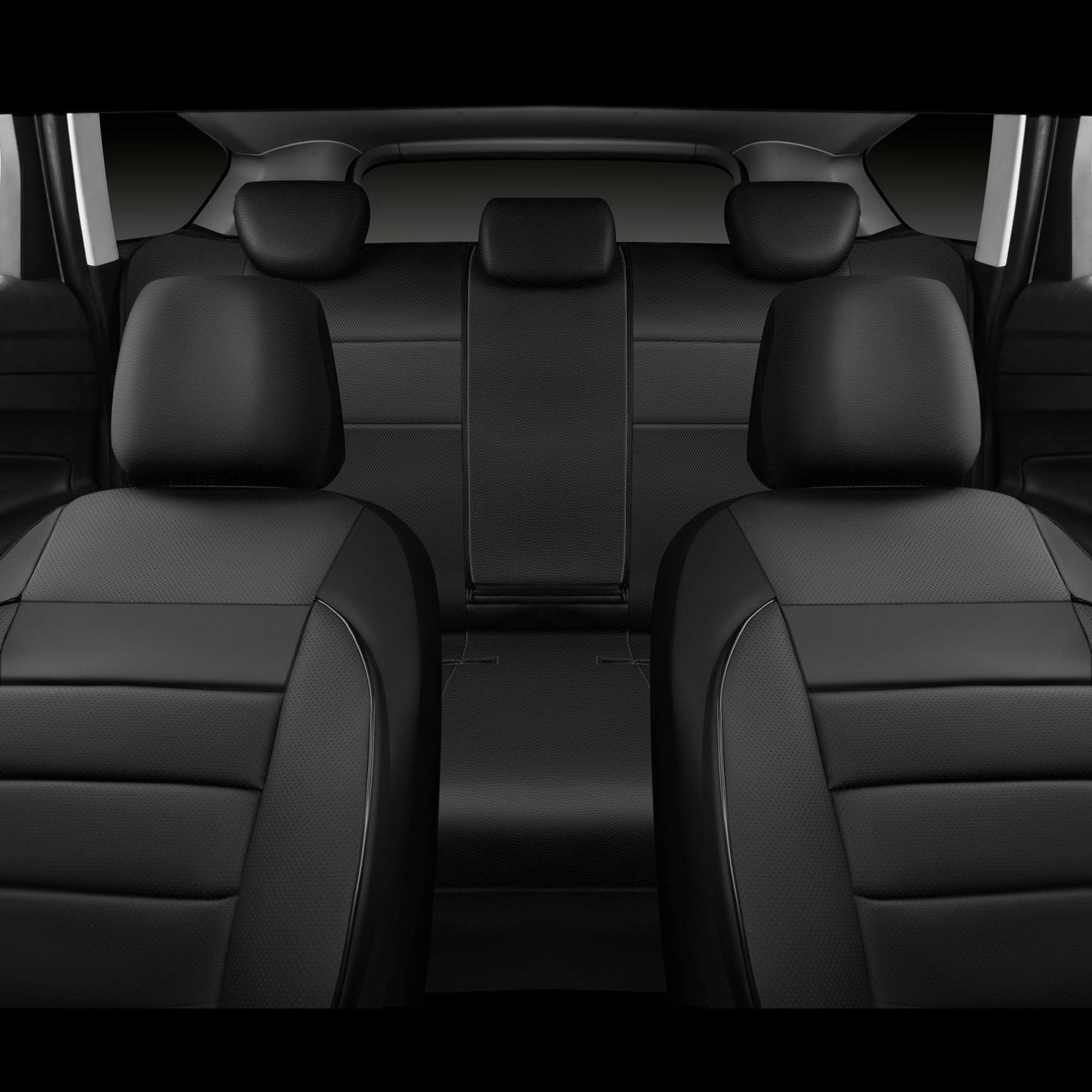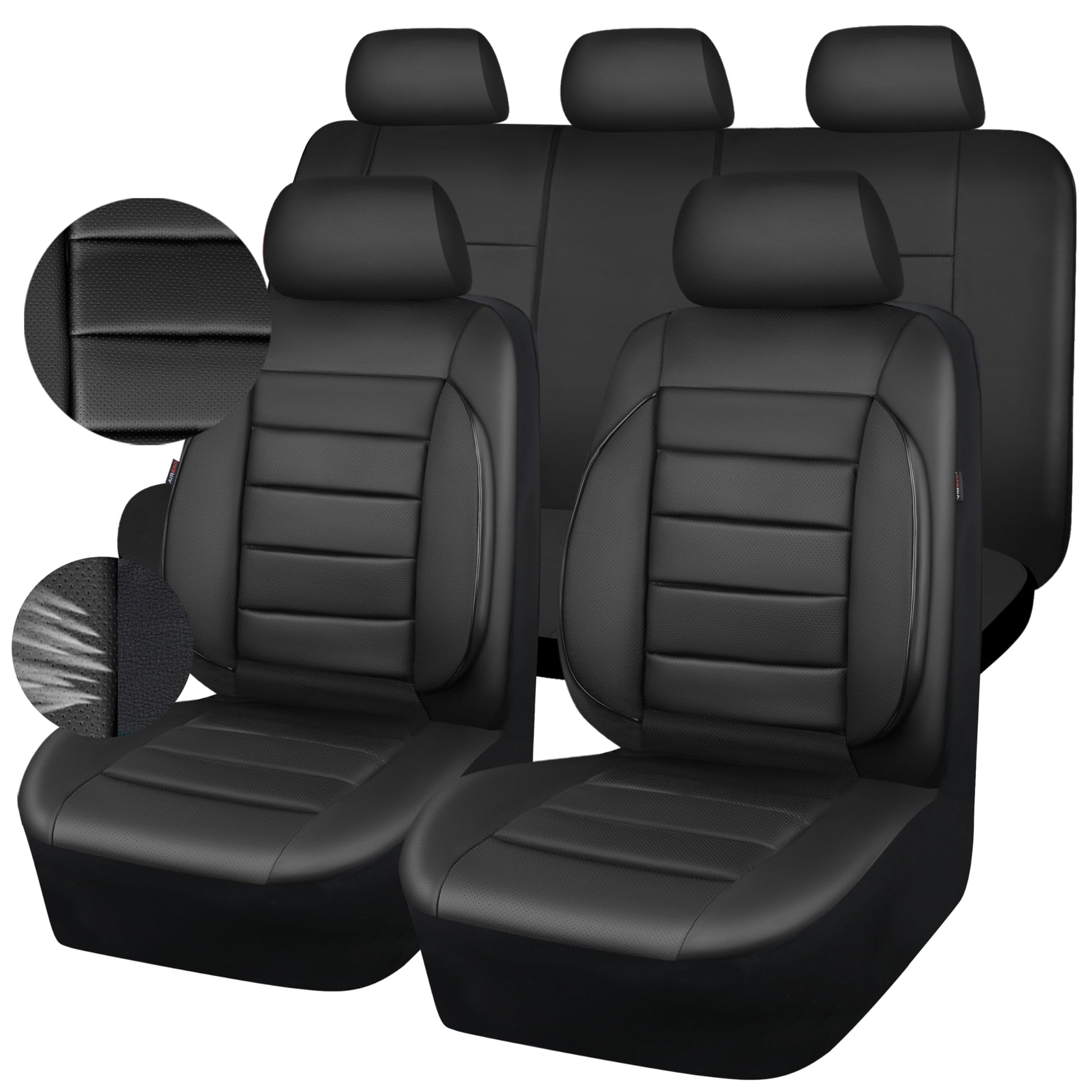 CAR PASS Leather Seat Covers Full Set Universal Water Resistant 3D Foam Back Support, Luxury Comfort Automotive 5 Seat Covers All Season Fit for SUV,Sedan,Van, Airbag Compatible Elegance(Pure Black)
