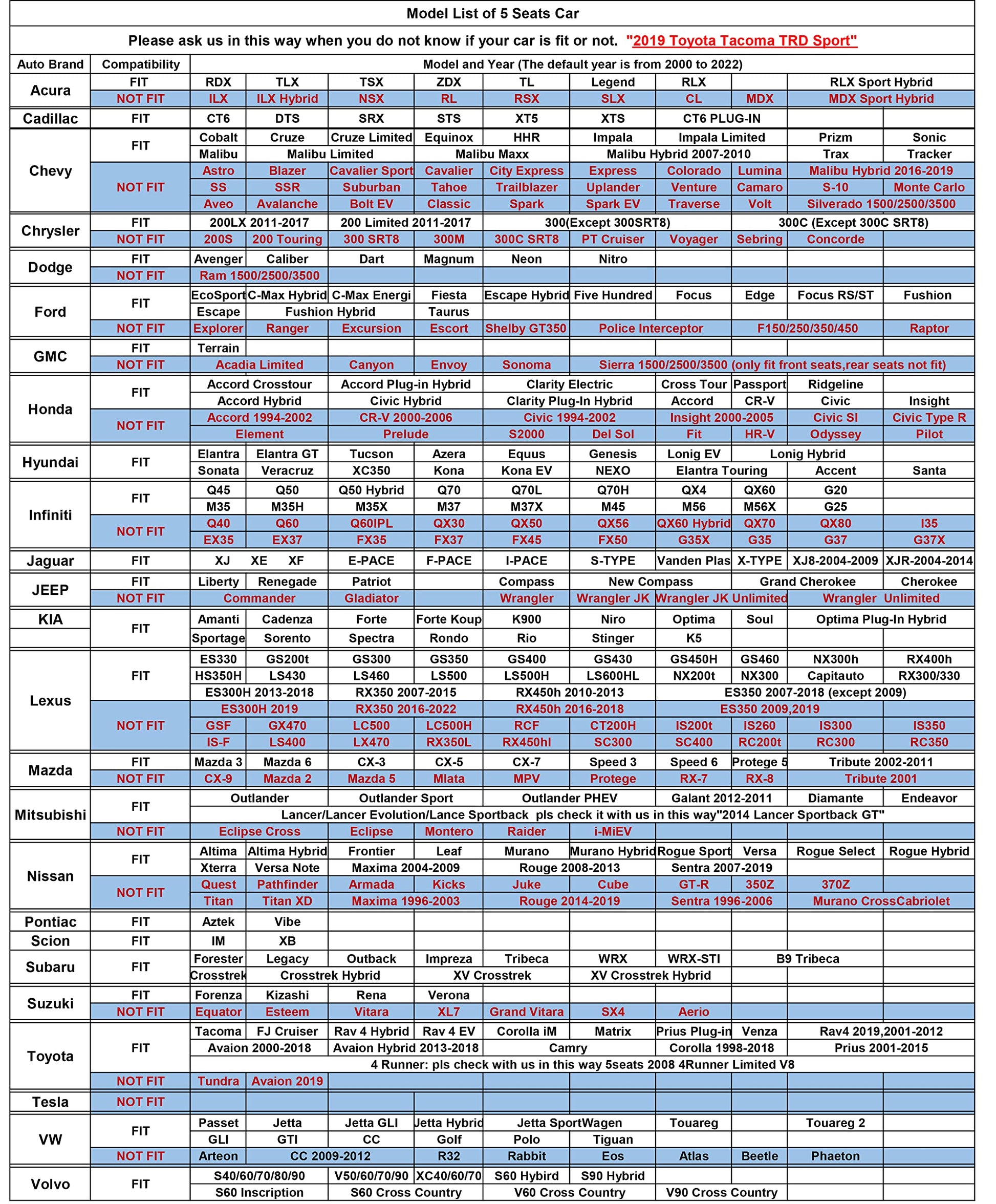 - Universal Car Seat Cushions:This seat covers are designed for various 5 passengers cars,sedans,suv,hybrids,hatchbacks.Not suitable for Full Size Pickup,such as Ford F Series,Dodge Ram 1500/2500/3500,Toyota Tundra,Chevy Silverado,GMC Sierra.