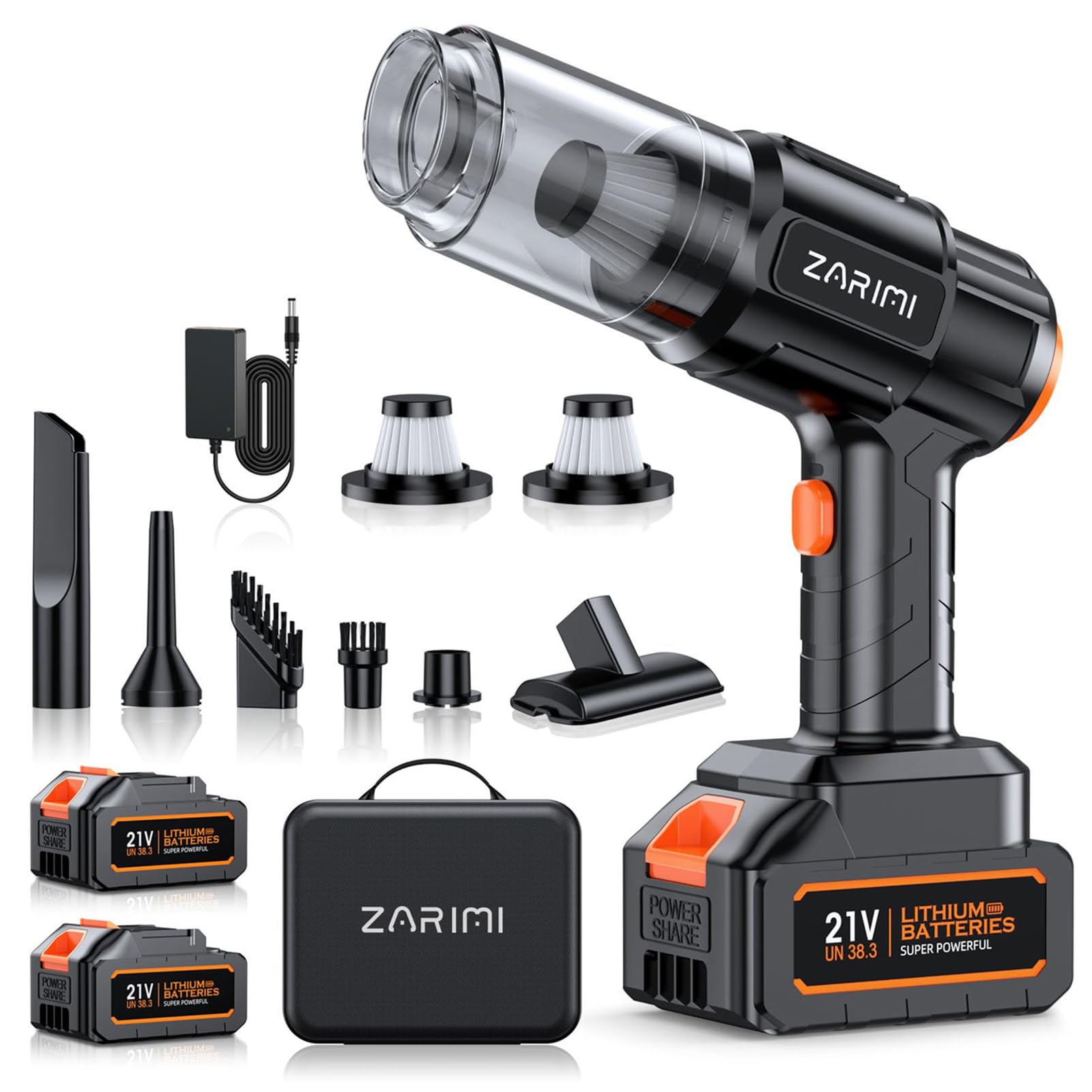 - Easy to Use & Maintain with Complete Accessories: The package includes 2 batteries, 2 reusable filters, a storage bag, and 6 versatile nozzles for different cleaning needs. The washable dustbin and easy-to-clean filters ensure hassle-free maintenance, making it a reliable vacuum cleaners for home, car, and more.
